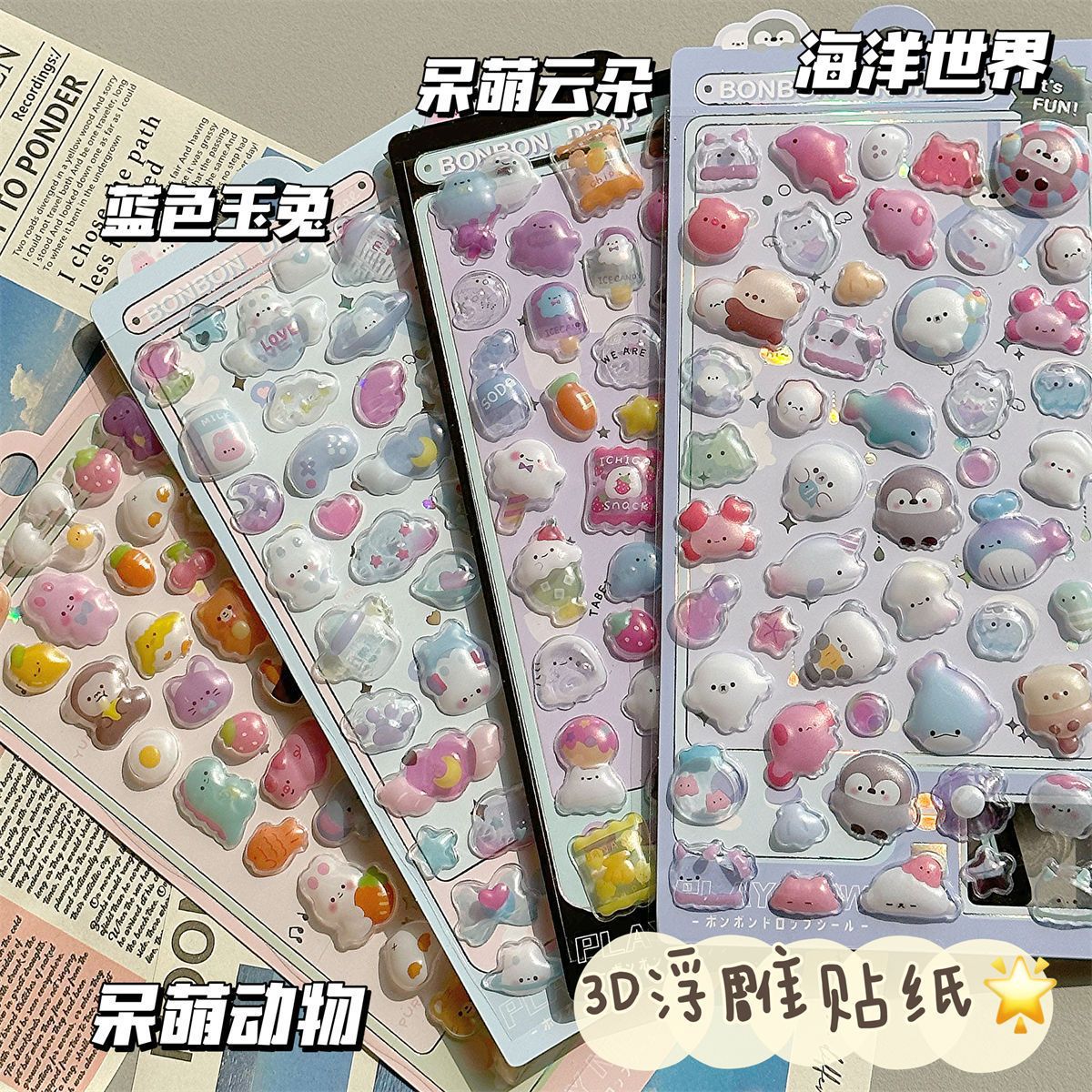 儿童贴纸女孩3D立体浮雕贴宝石卡通贴可爱贴画玩具手机装饰小图案