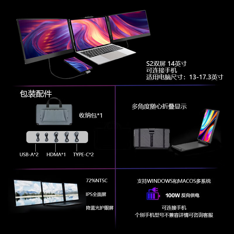 【跨境爆款】14寸便携扩展屏单屏双屏笔记本扩展副屏炒股办公设计