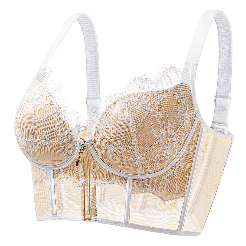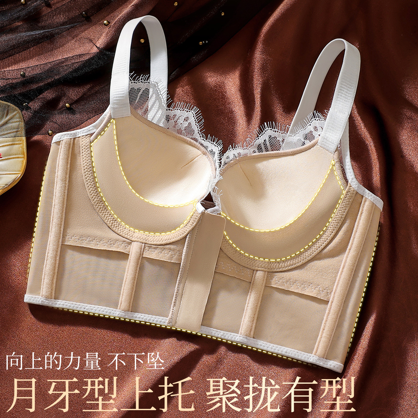 新款聚拢上托轻奢院线款蕾丝马甲文胸透气收副乳前拉链调整型内衣