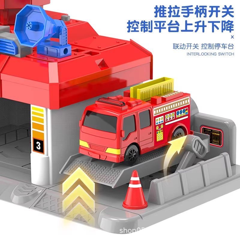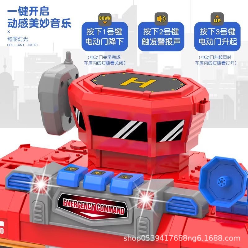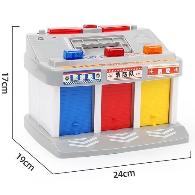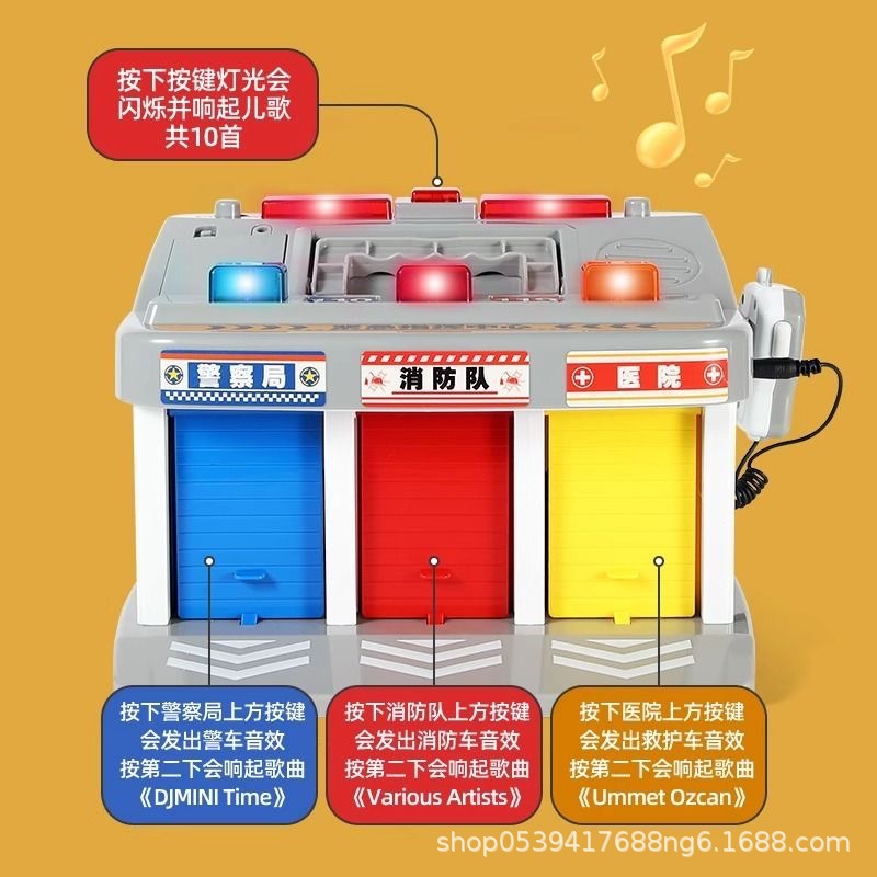 儿童紧急指挥中心警察车消防队停车场声光小汽车模型男孩玩具套装