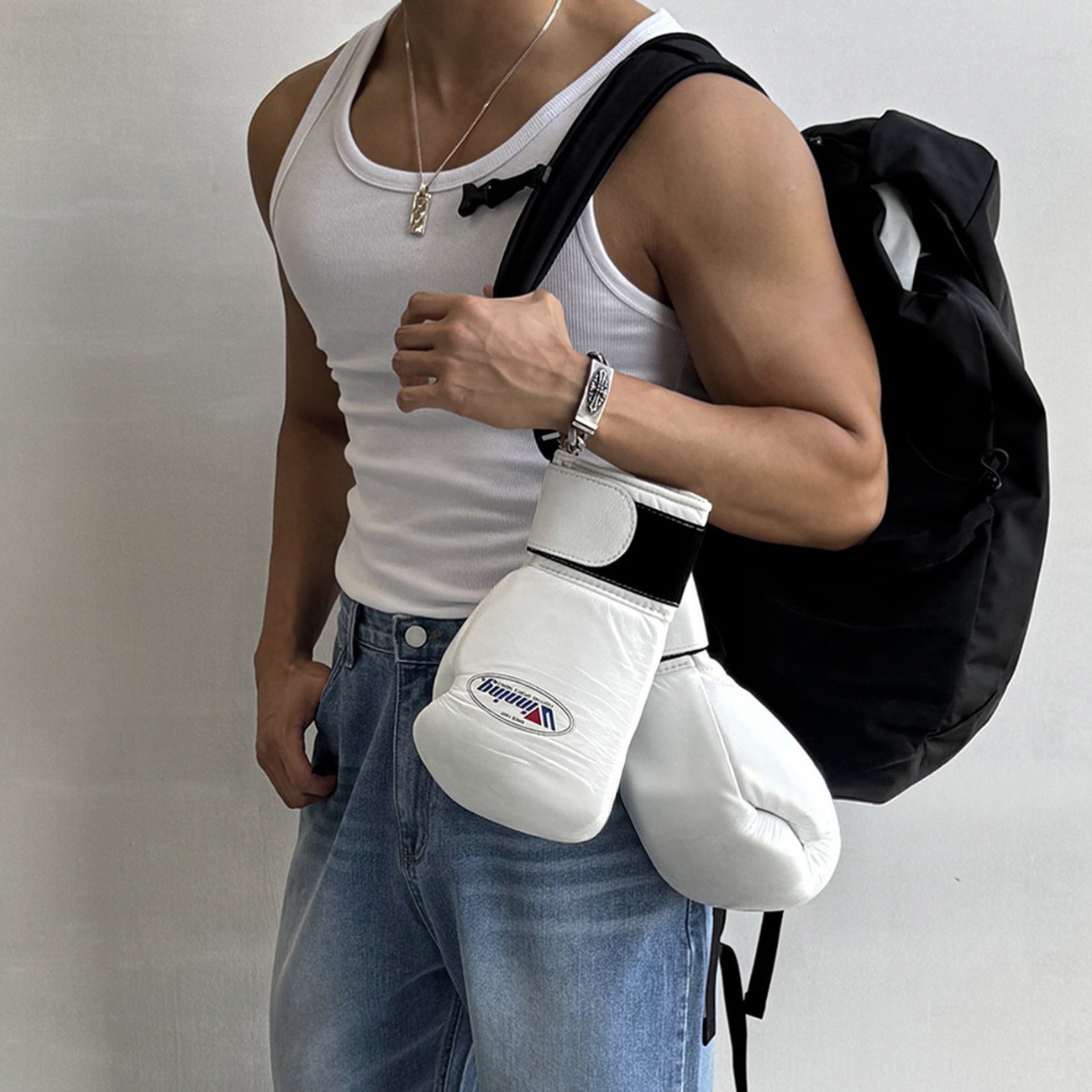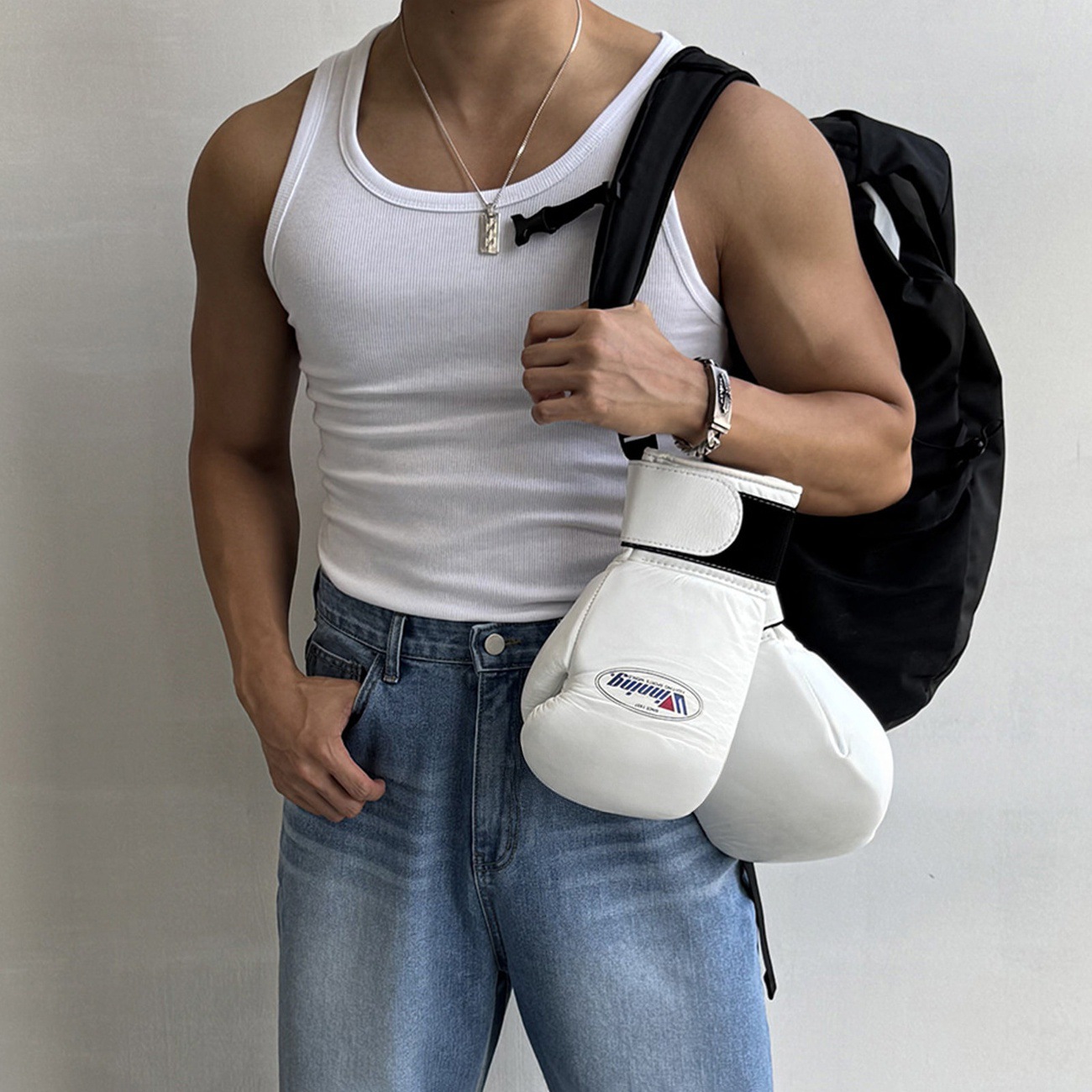 美式白色重磅健身房运动背心男夏季螺纹坎肩打底训练透气无袖T恤