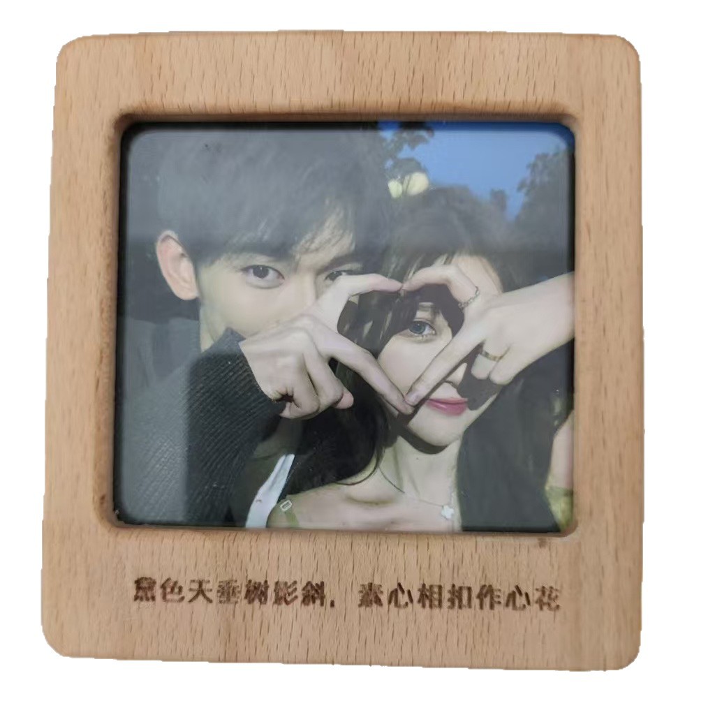 跨境装手工木制相框磁性相框带迷你木冰箱磁性框架展示 DIY创意