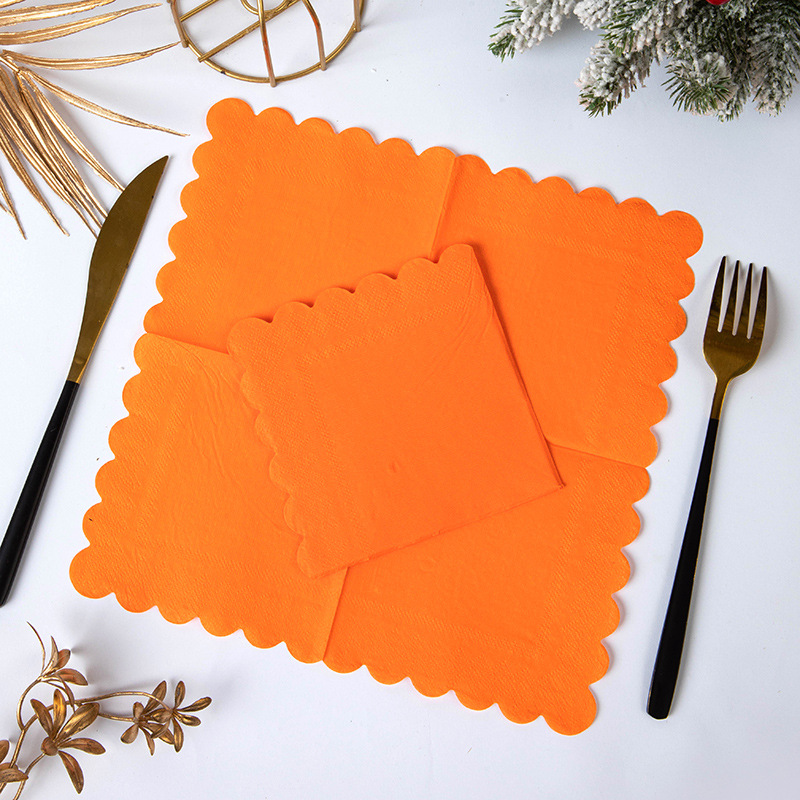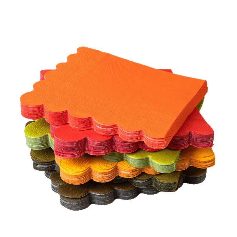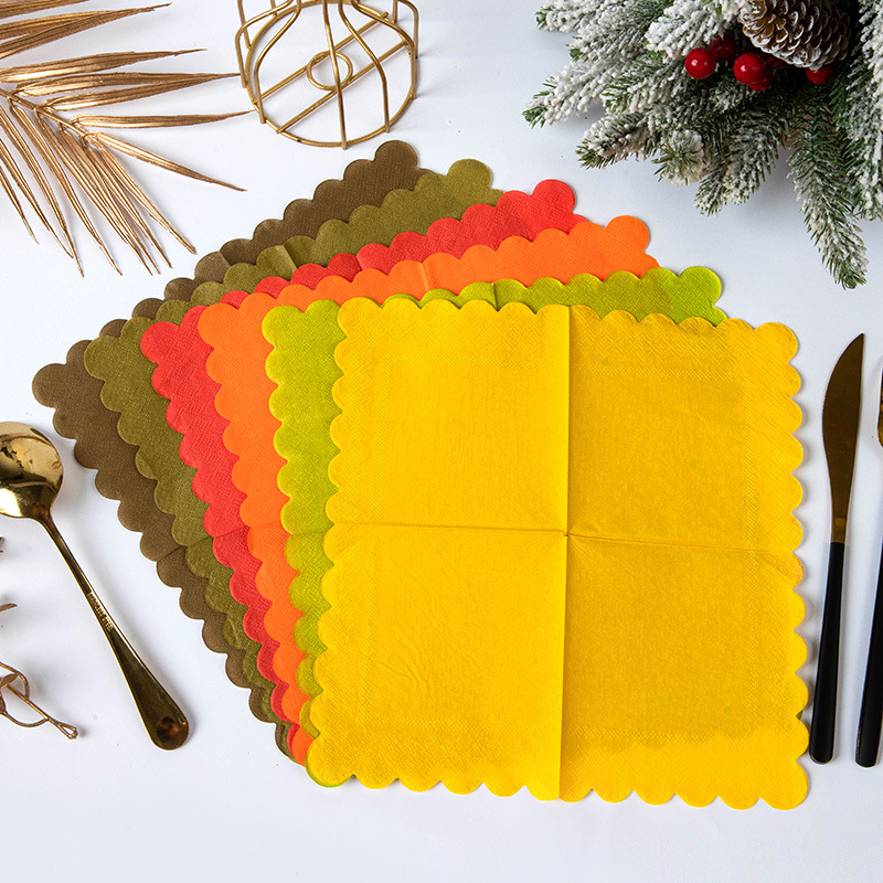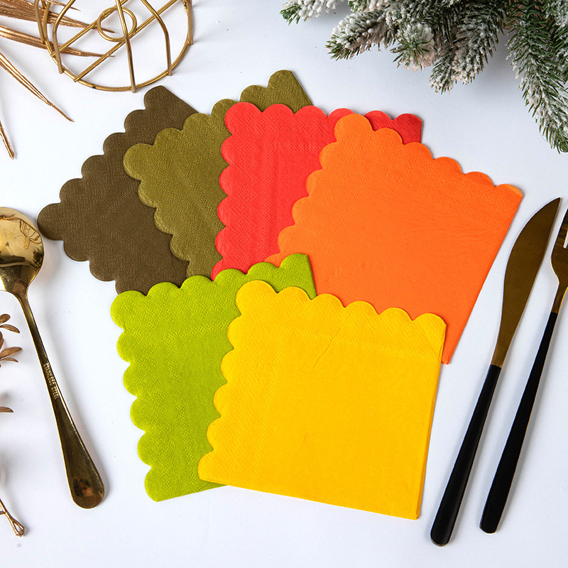 六色纯色花边一次性纸巾跨境秋日丰收主题餐桌布置餐巾纸LOGO批发