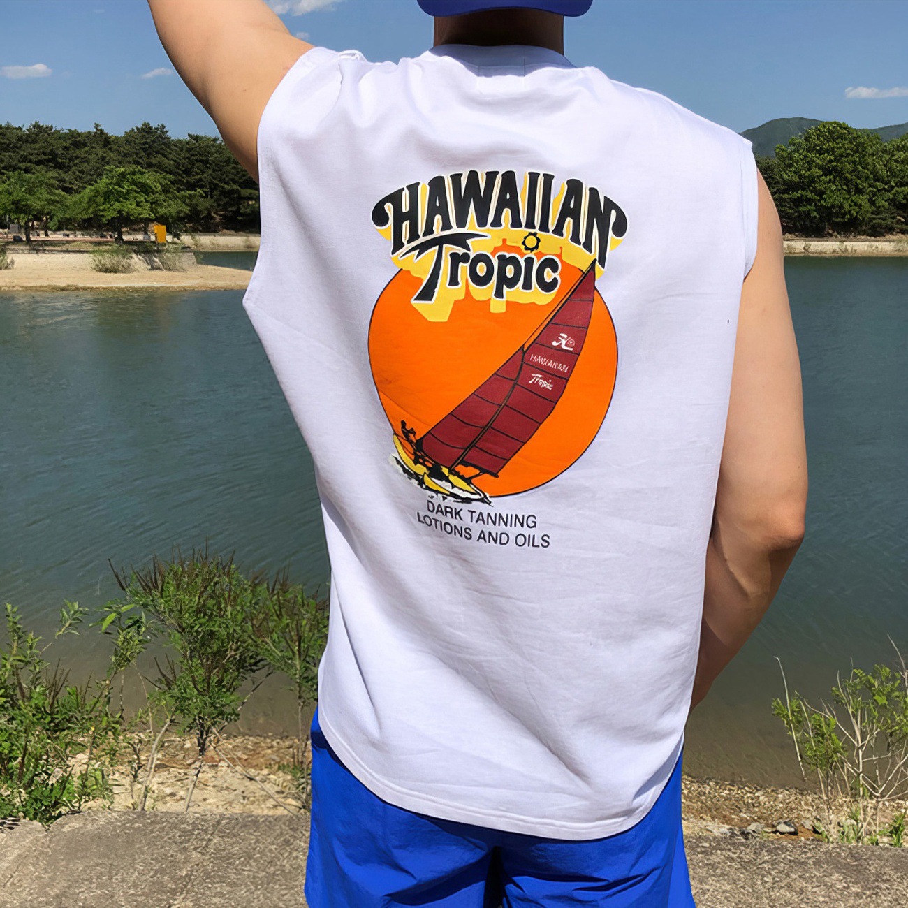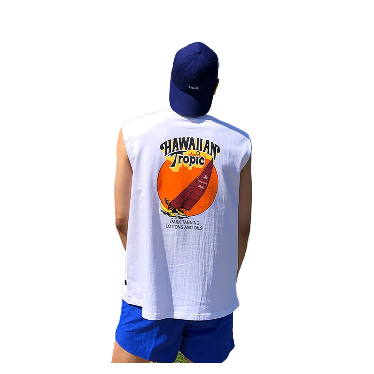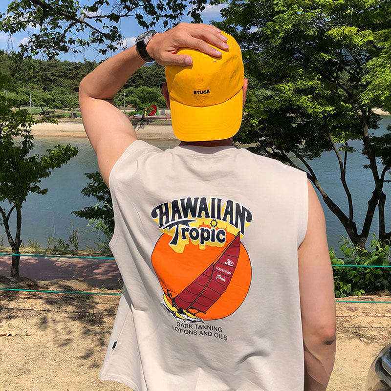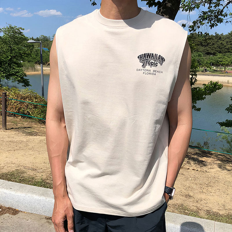圆领背心男士夏季2025新款美式潮牌背后印花设计感上衣无袖t恤衫