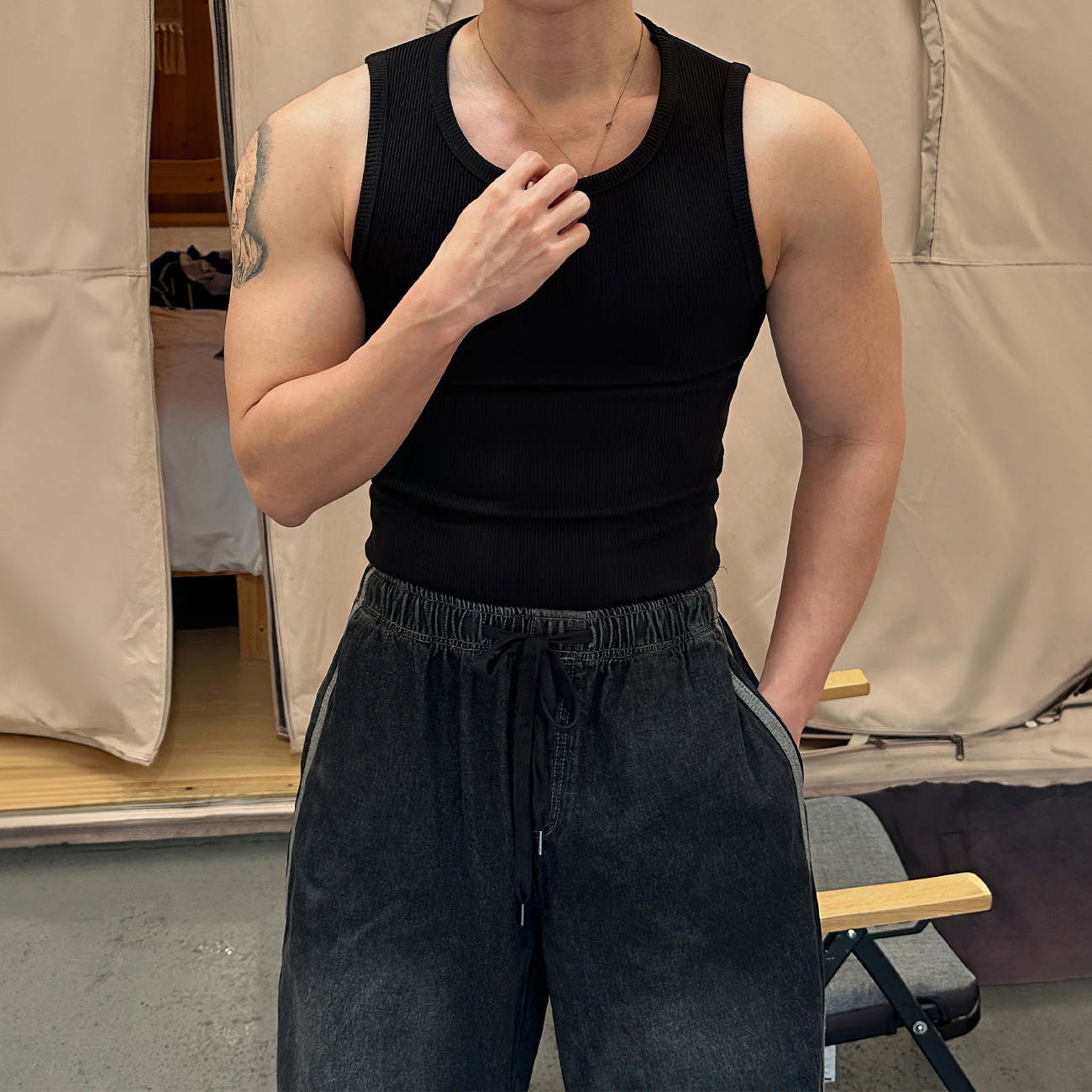 美式黑色修身无痕背心男夏季外穿螺纹弹力汗衫显肌肉显壮无袖t恤