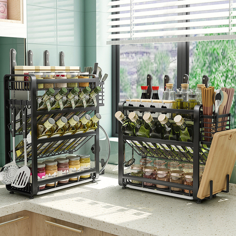 不锈钢斜放式调料架多层台面收纳防潮防锈厂直发免打孔置物