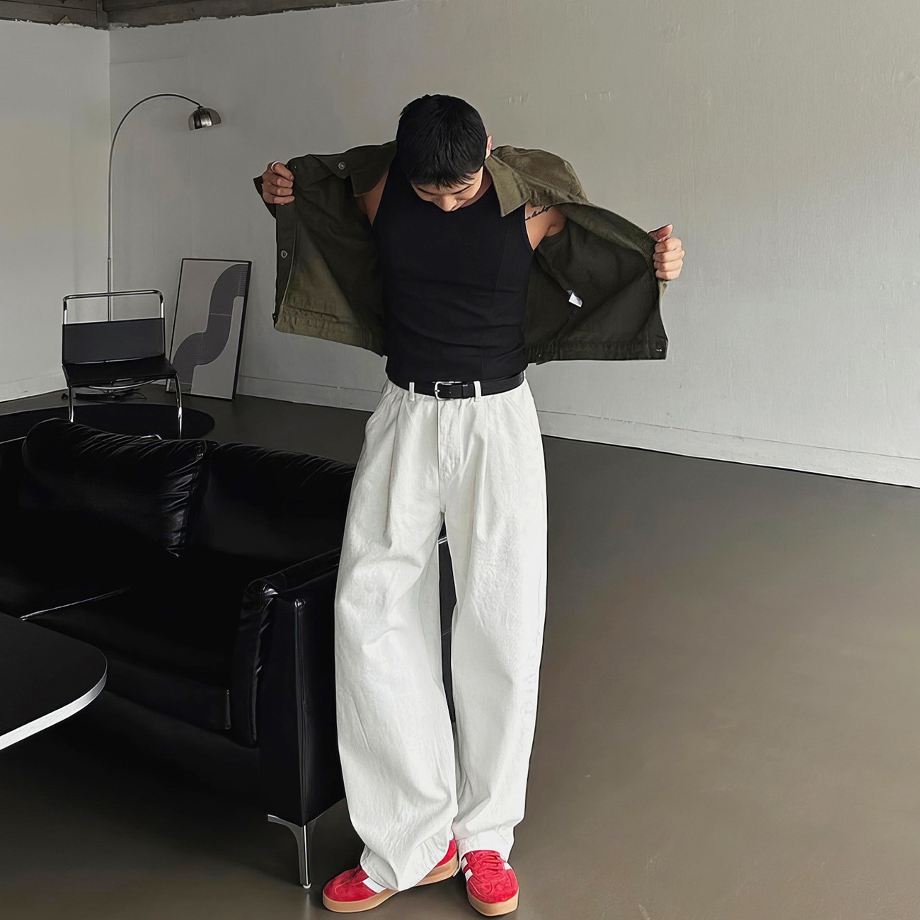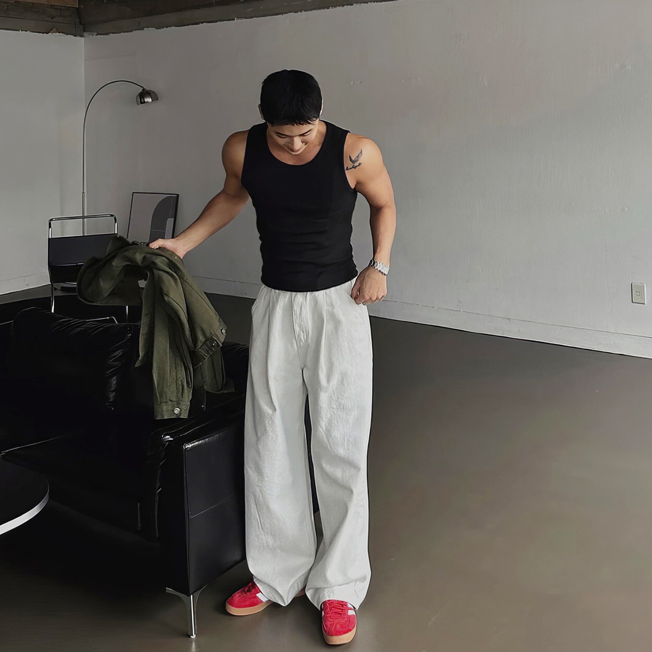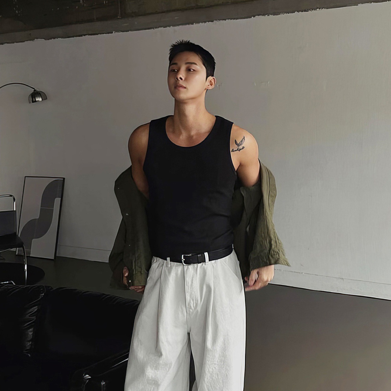 螺纹针织紧身背心男士夏季韩系高品质简约修身弹力无袖t恤打底衫