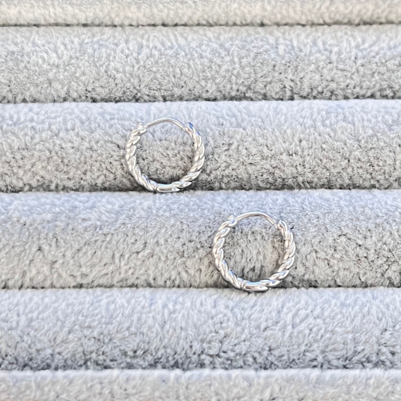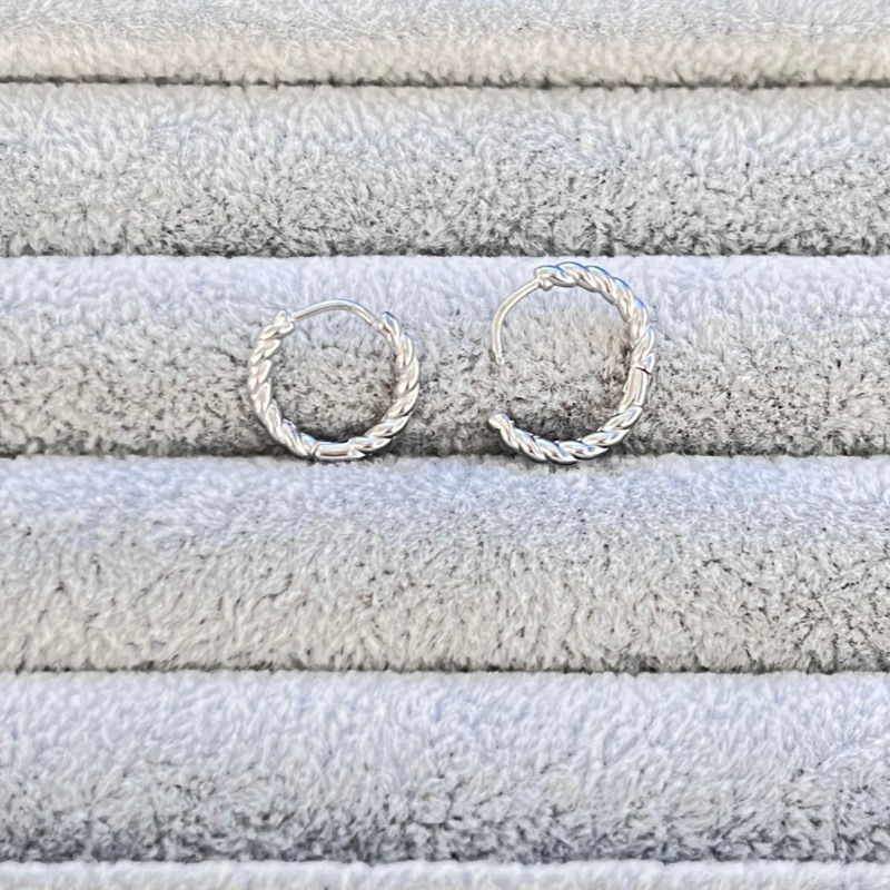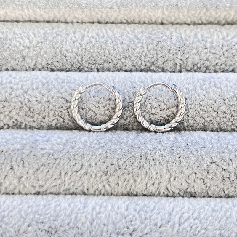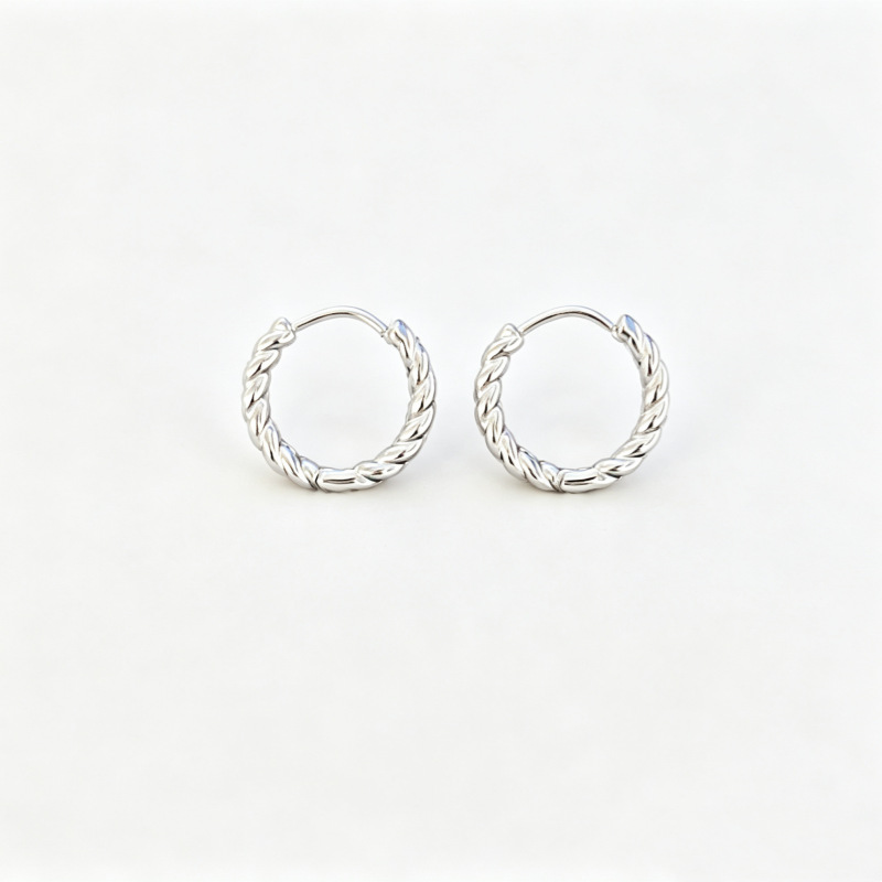 星屿不锈钢 螺旋纹耳圈ins小众个性金属风百搭线条麻花镂空耳饰女