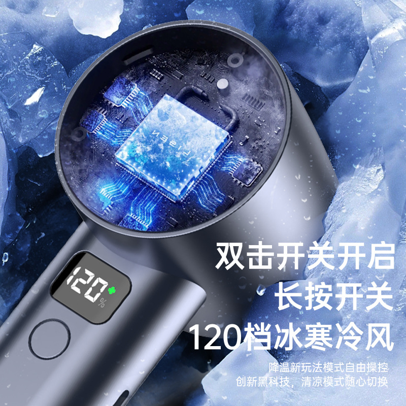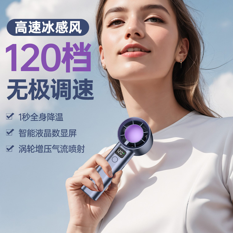厂家热销手持数显风扇120档高速涡轮风扇户外便携式USB迷你小风扇