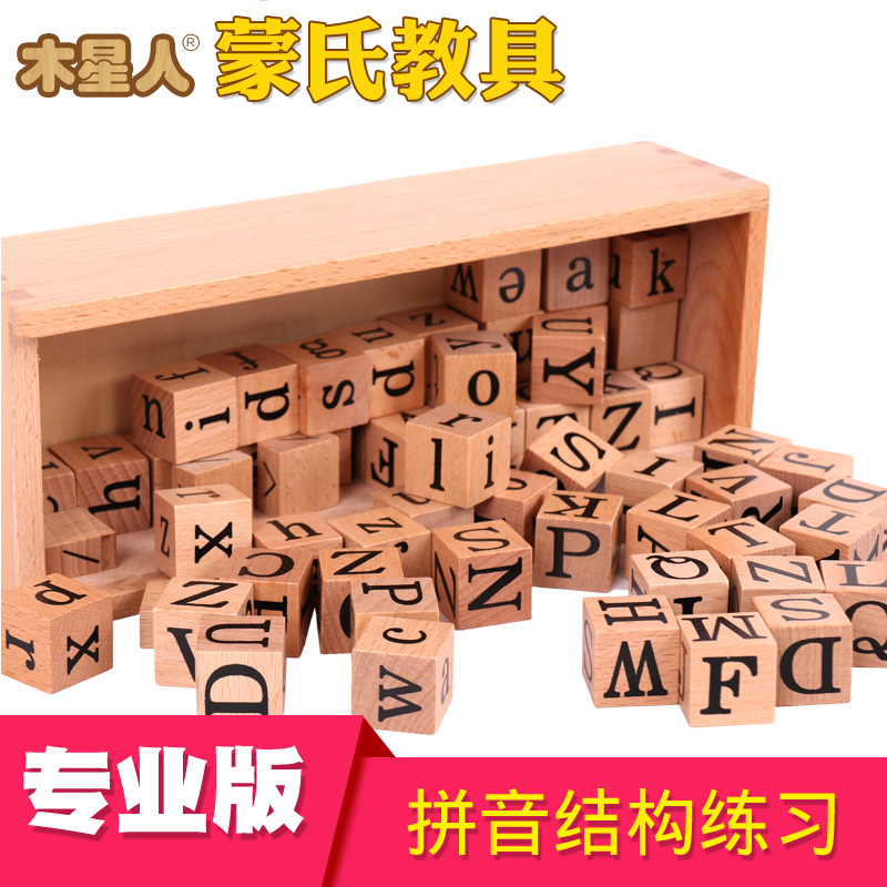 蒙台梭利教具木制字母积木儿童早教蒙氏教具拼音结构练习益智玩具