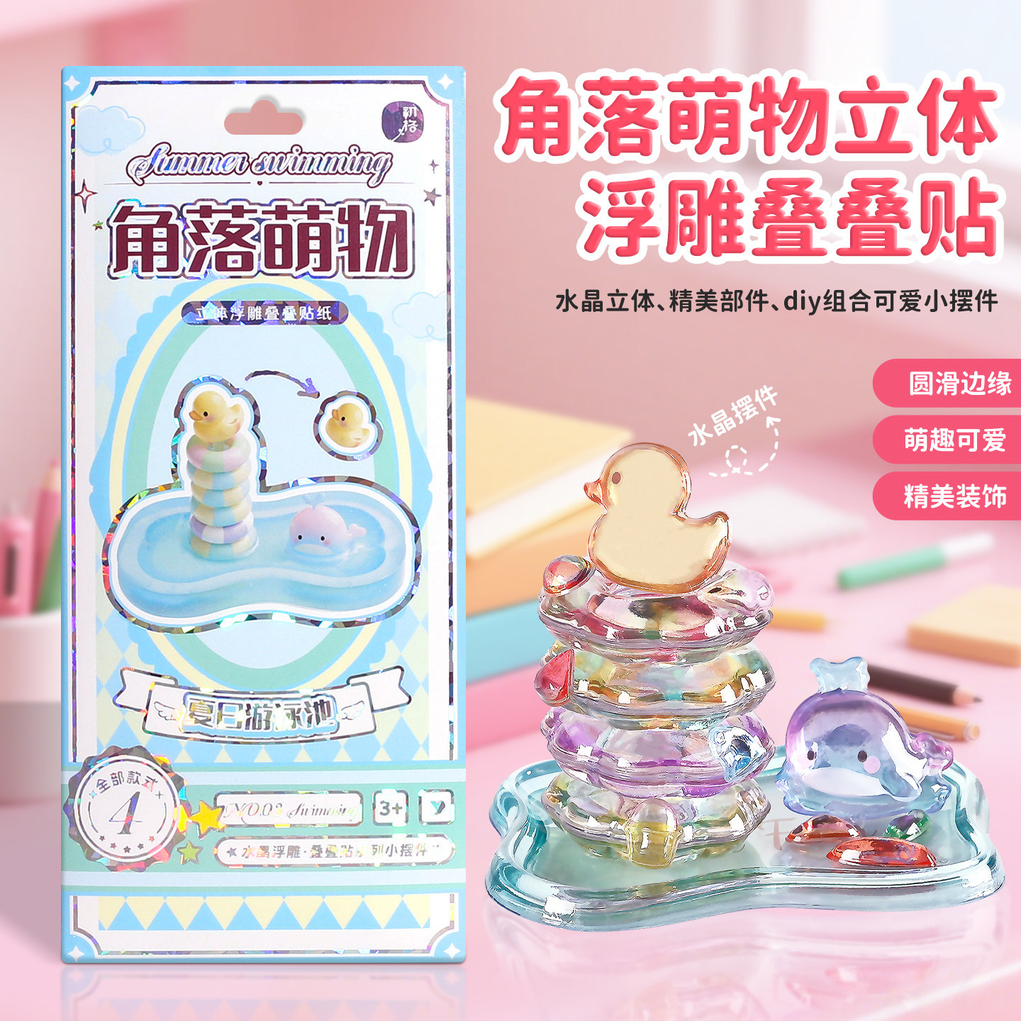 角落萌物立体实心浮雕叠叠贴纸通d手可爱创意儿童贴纸玩具