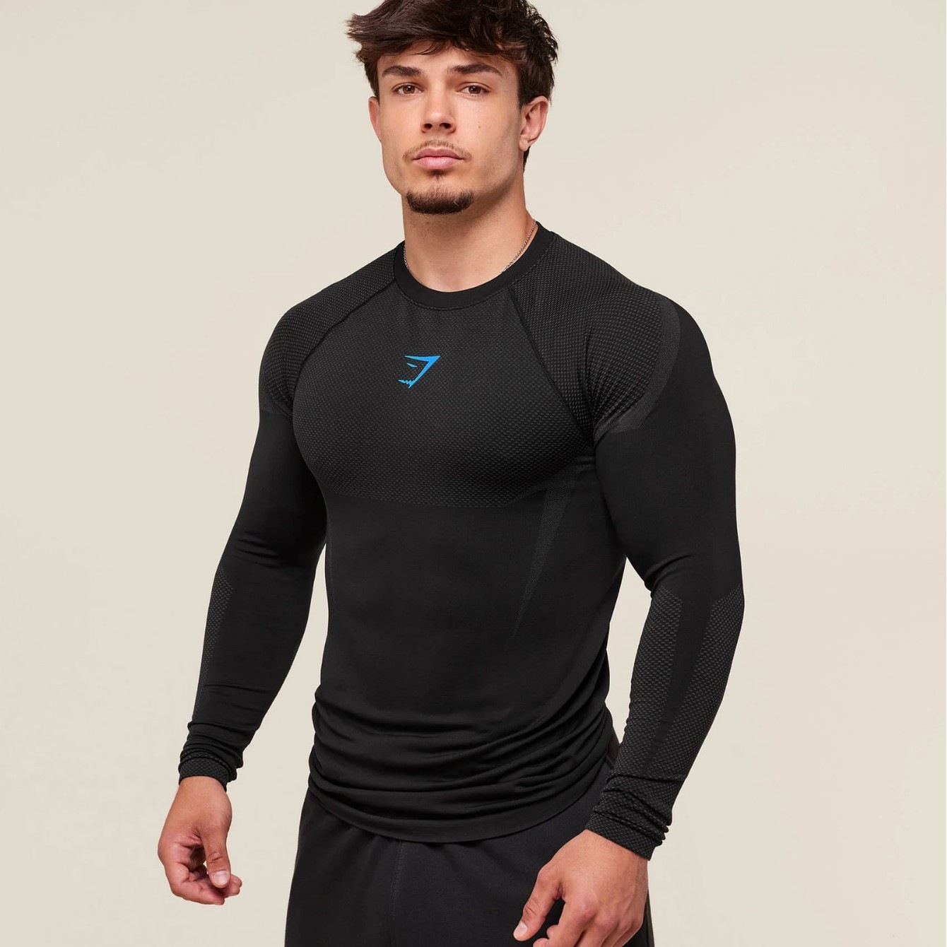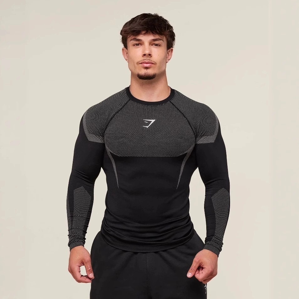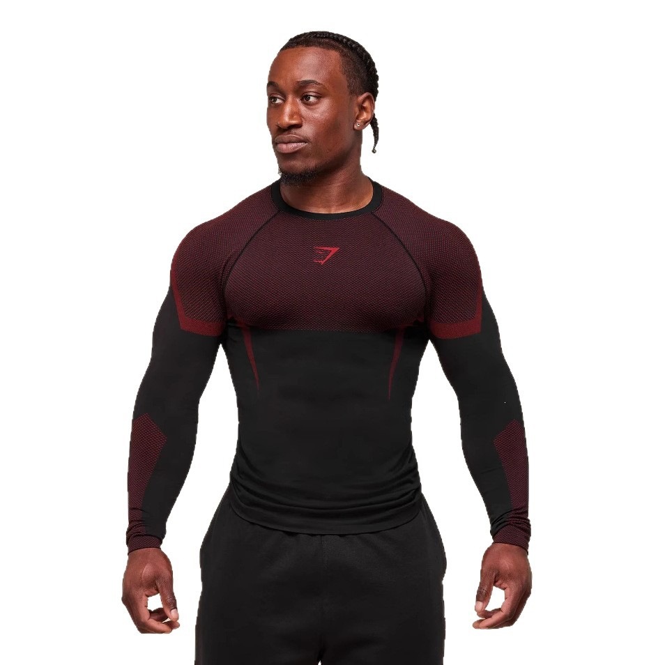 GYMSHARK健身上衣男士跨境爆款紧身衣男跑步训练长袖T恤肌肉鲨鱼