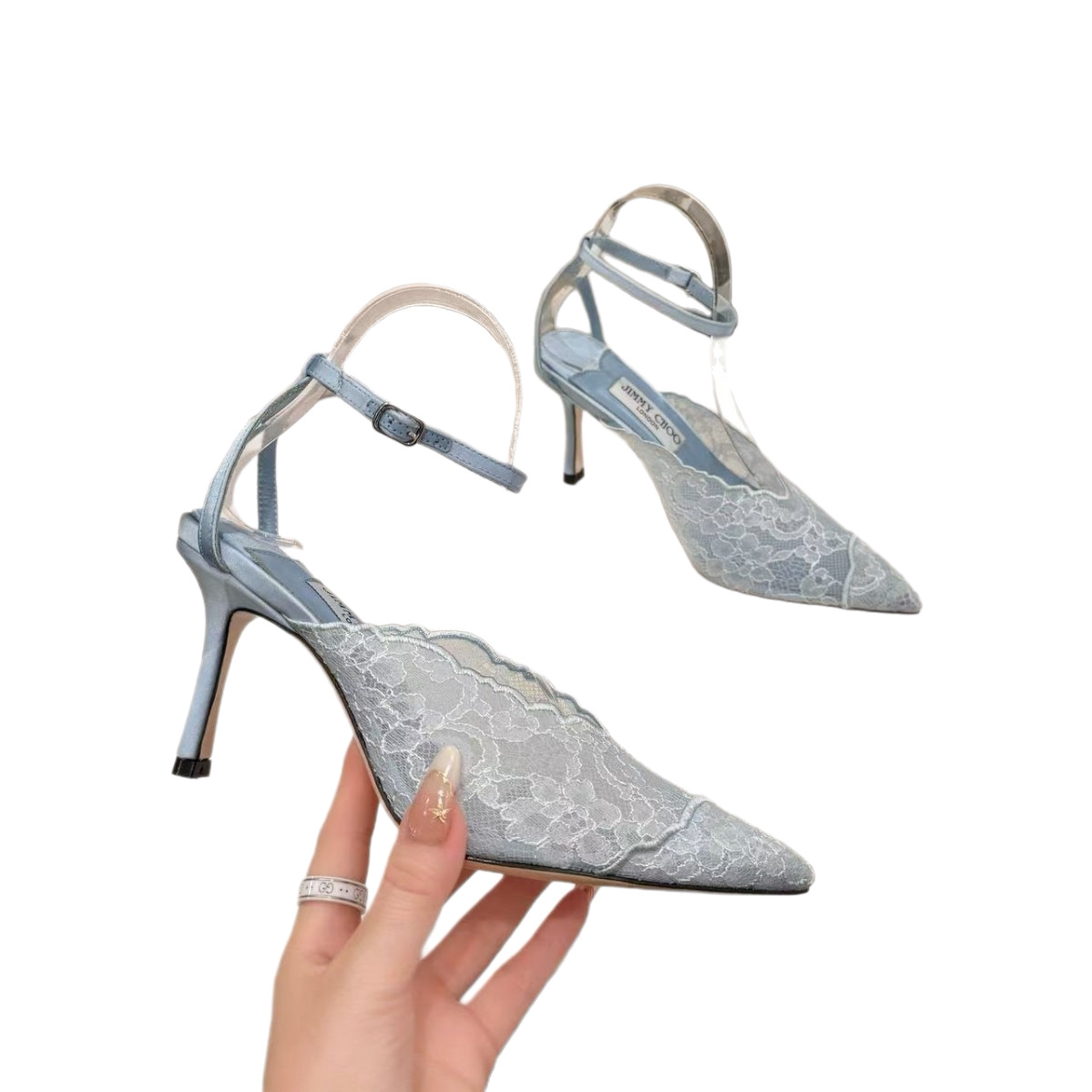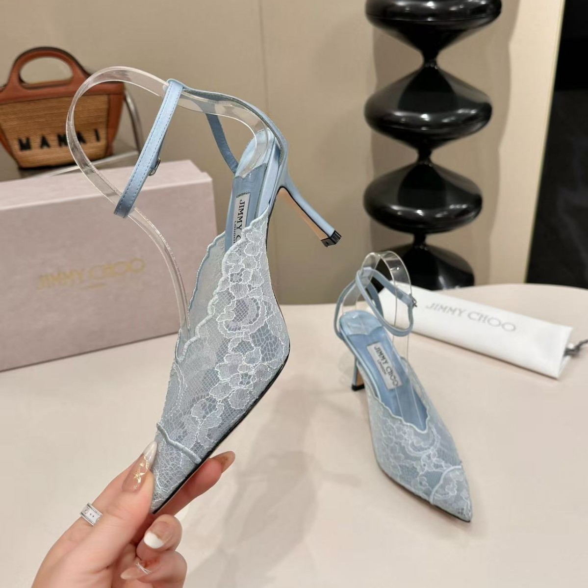 广州发货真皮高跟凉鞋女细跟透明后绊带方头水台欧美风时尚走秀鞋