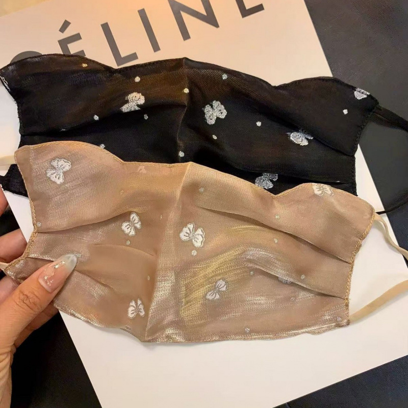 高颜值蝴蝶结印花2026新款韩系网纱透气国风口罩