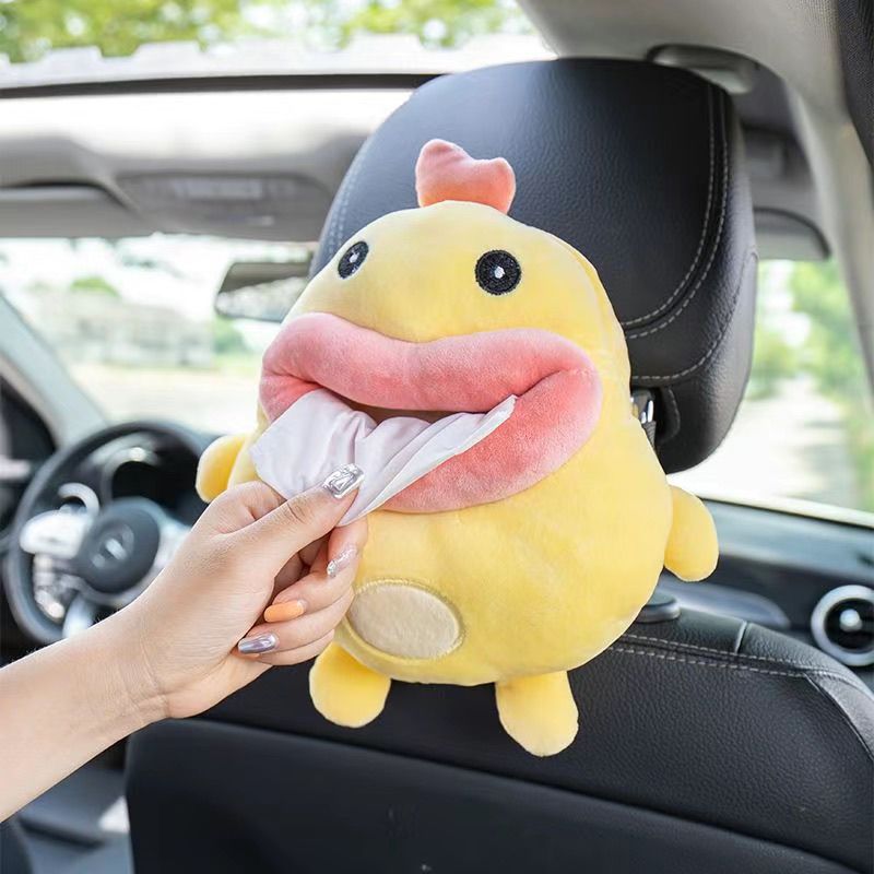 新款创意卡通汽车用扶手箱抽纸盒车内装饰挂式创意可爱毛绒纸抽