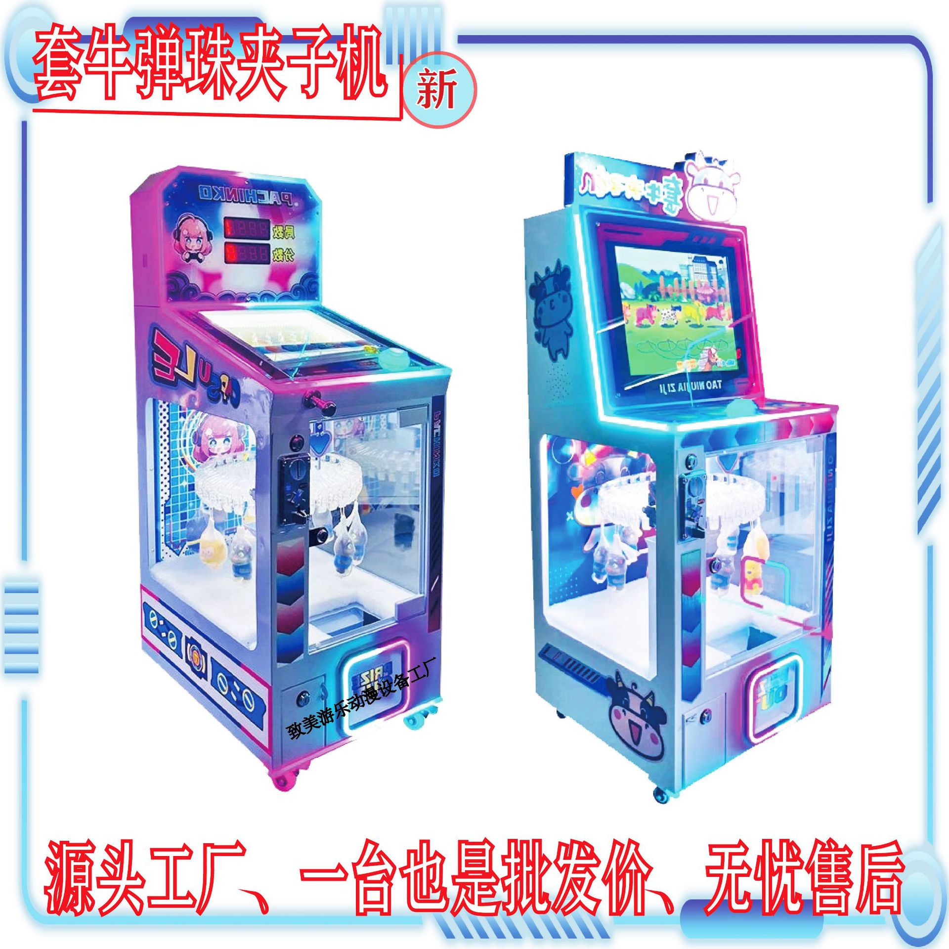 2025新款儿童套牛弹珠夹子机扫码投币电玩套小牛游戏夹娃娃礼品机
