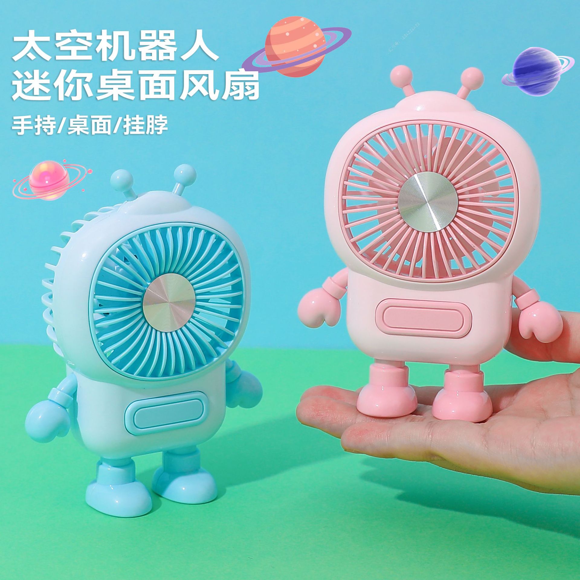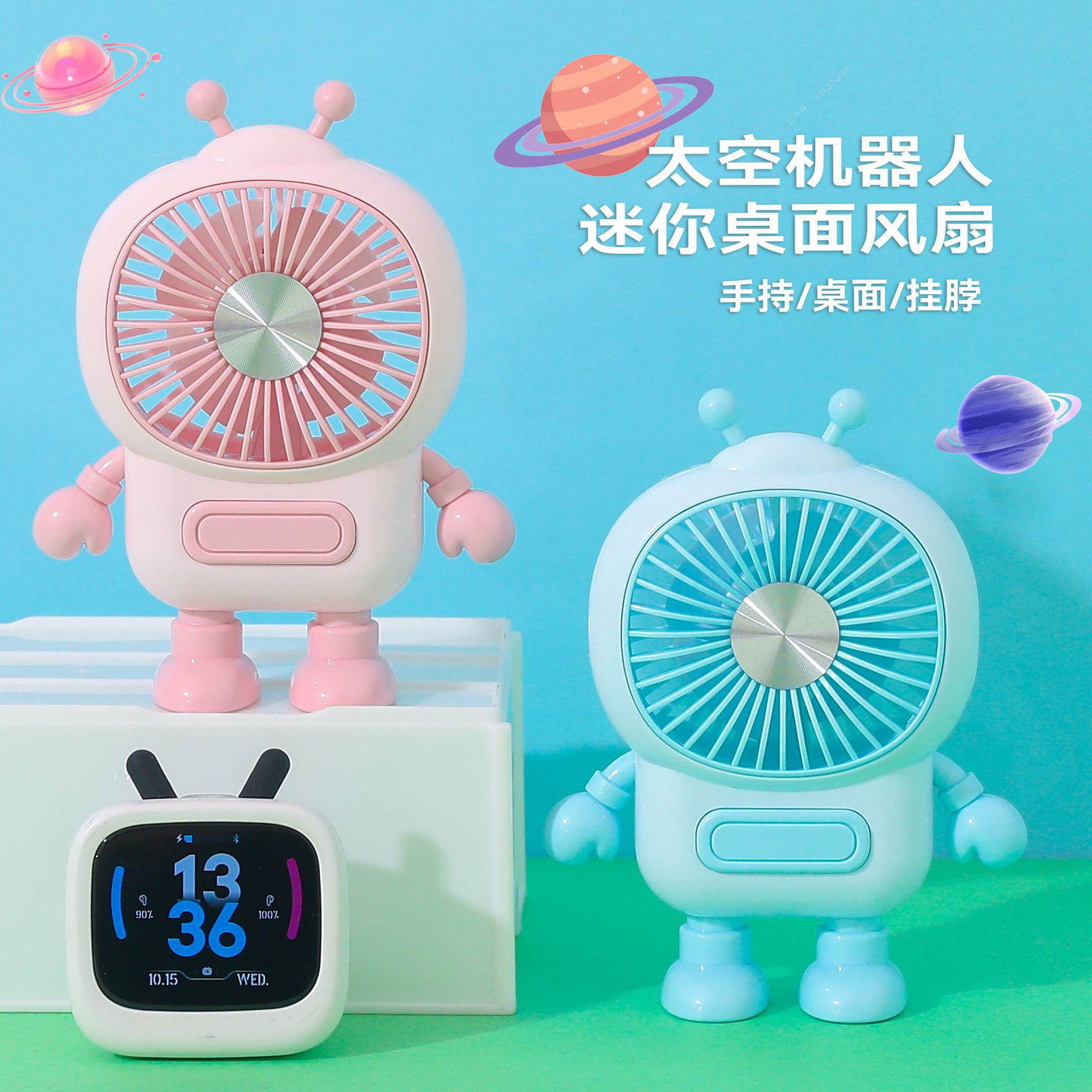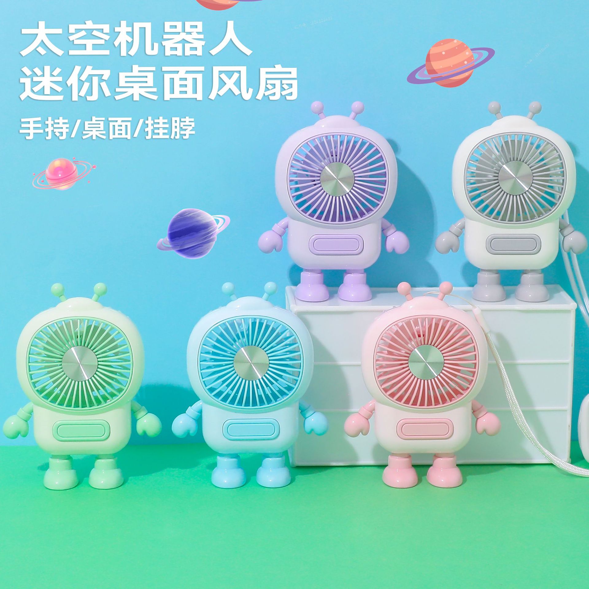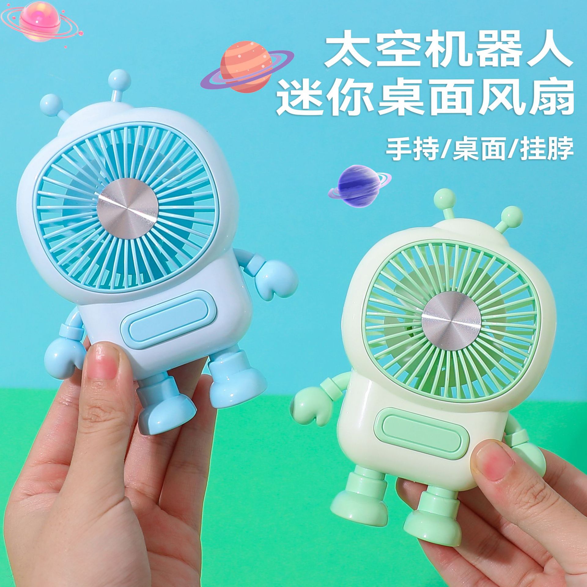 跨境迷你桌面风扇夏季卡通儿童可充电带挂绳挂脖便携手持usb风扇