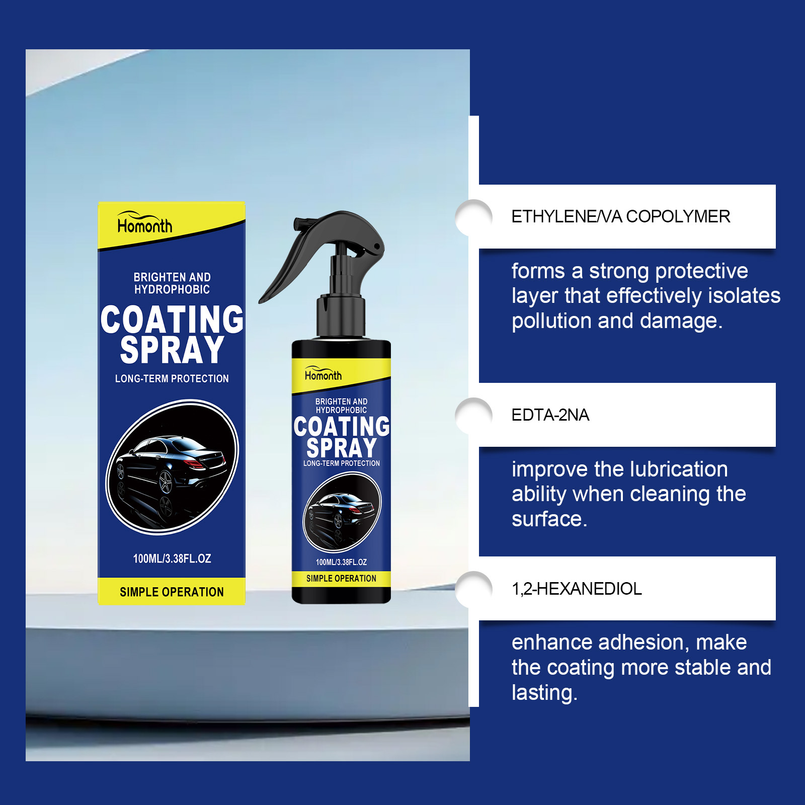 | 类型 | 汽车涂层喷雾 | 主要成分 | 水、 改性氨基硅油高分子聚合物、 乙烯共聚物、 1,2-己二醇、 EDTA-2Na |