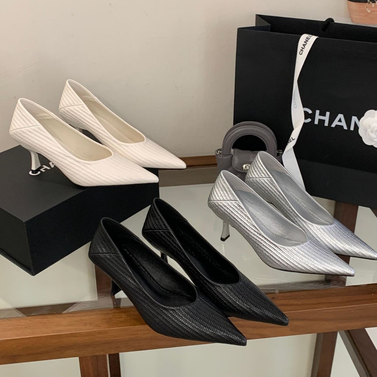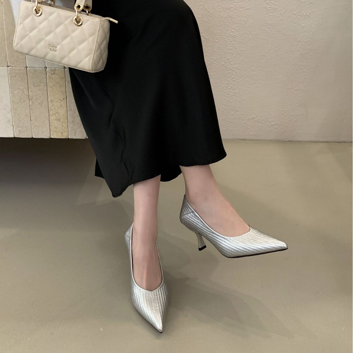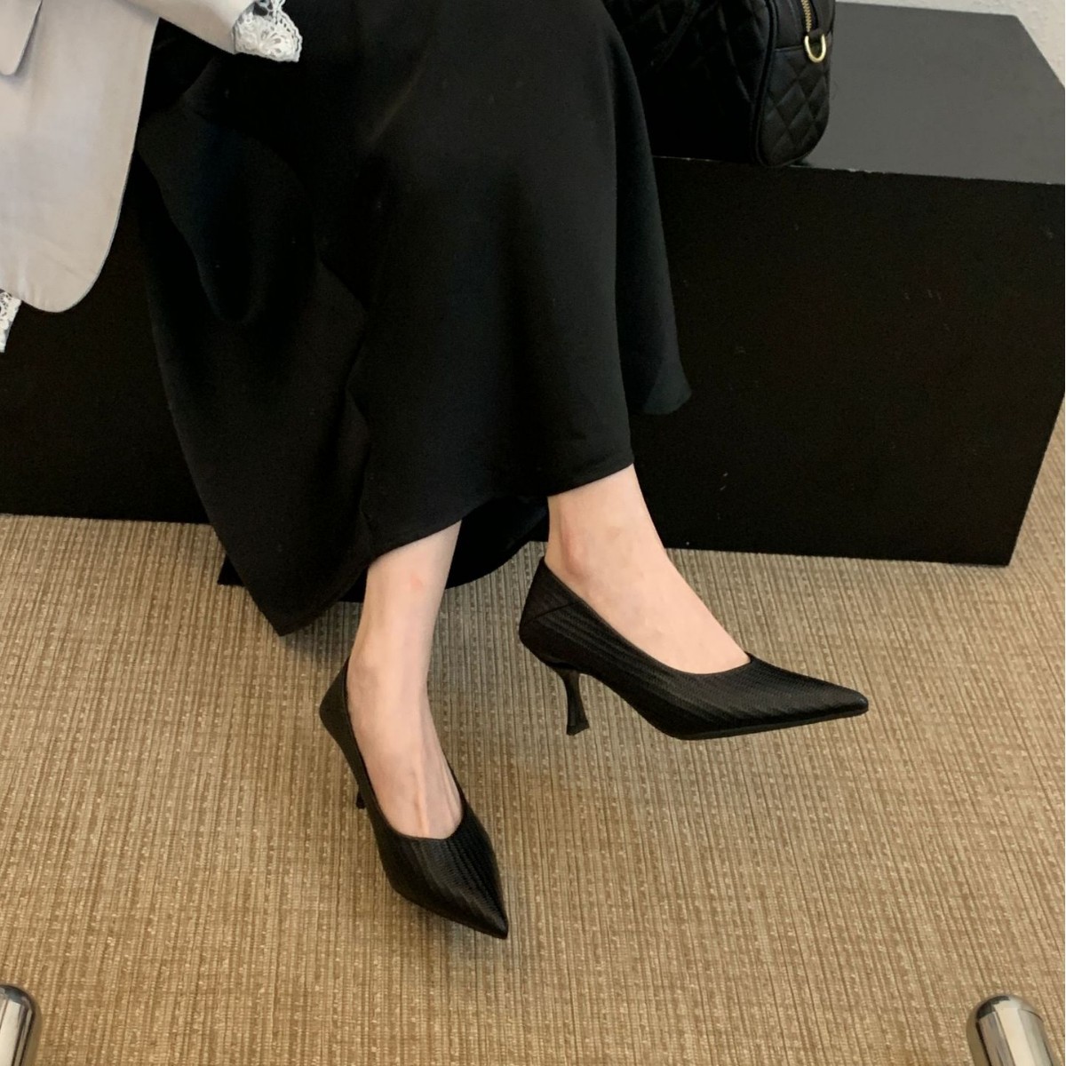2026新款春款小众感细跟高跟尖头浅口网格编织时尚舒适气质女单鞋