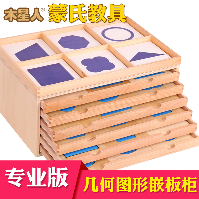 蒙氏教具几何图形嵌板柜儿童早教益智玩具形状认知手眼协调专业版