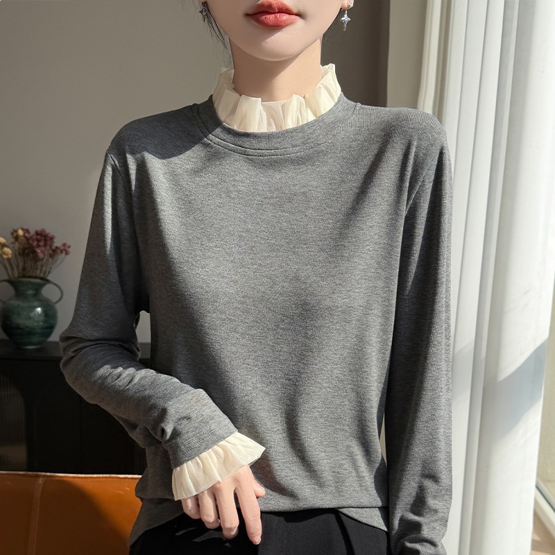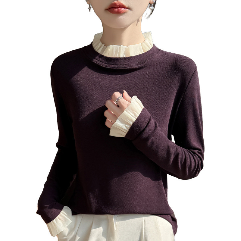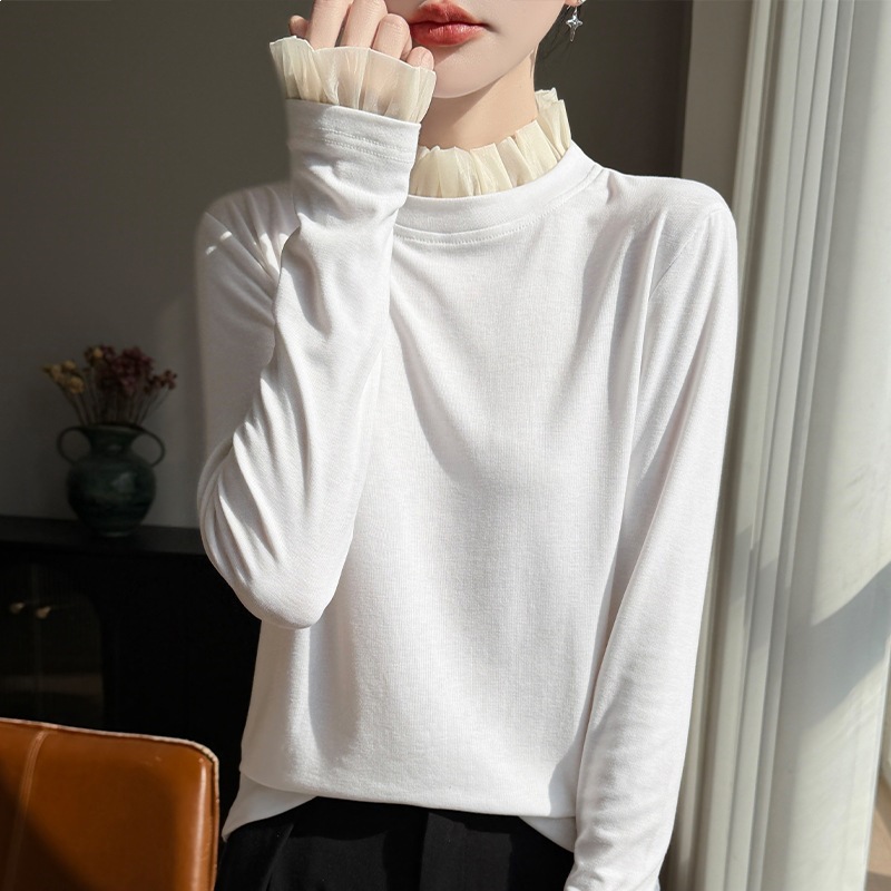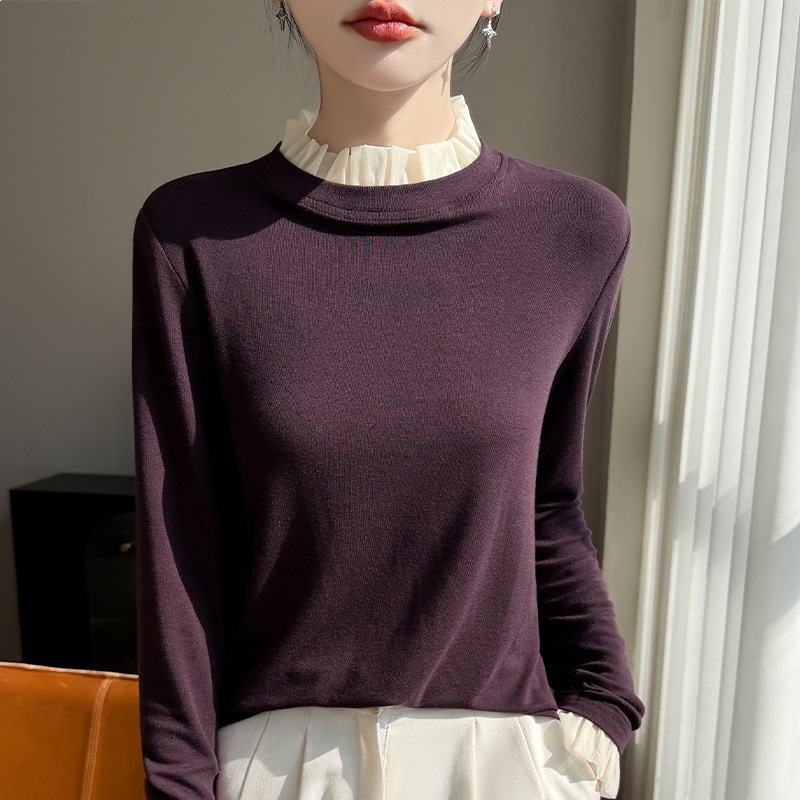 2026年春夏新款天丝羊毛欧根纱半高领针织衫长袖女拼色套头打底衫
