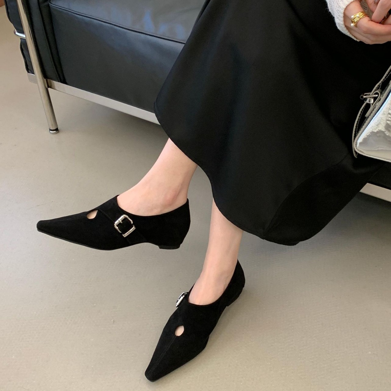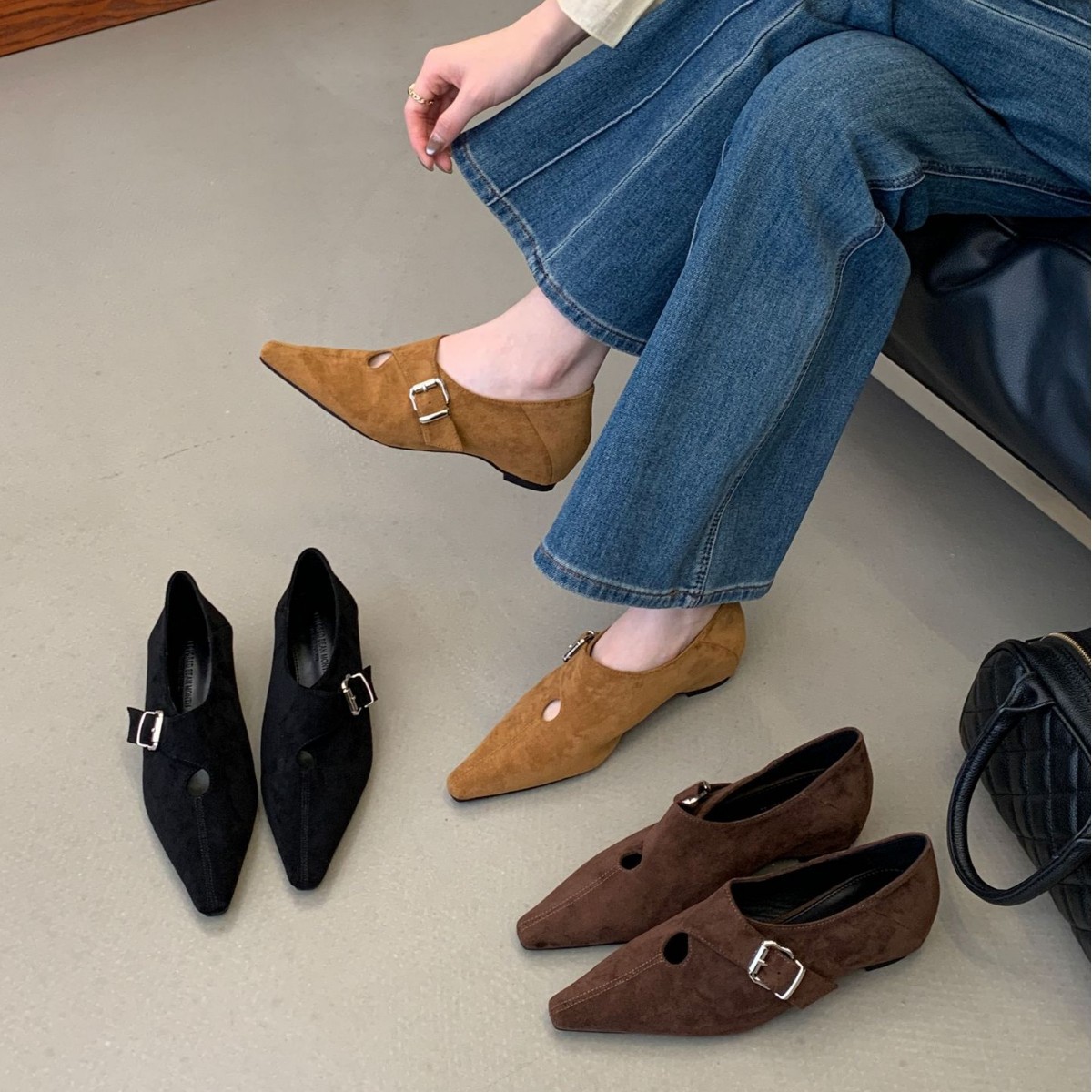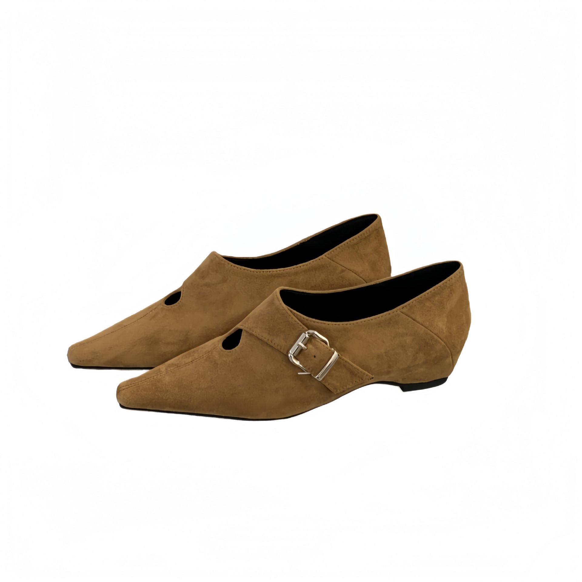 新款2026春夏复古尖头皮带扣中跟单鞋女设计感绒面内增高玛丽珍鞋