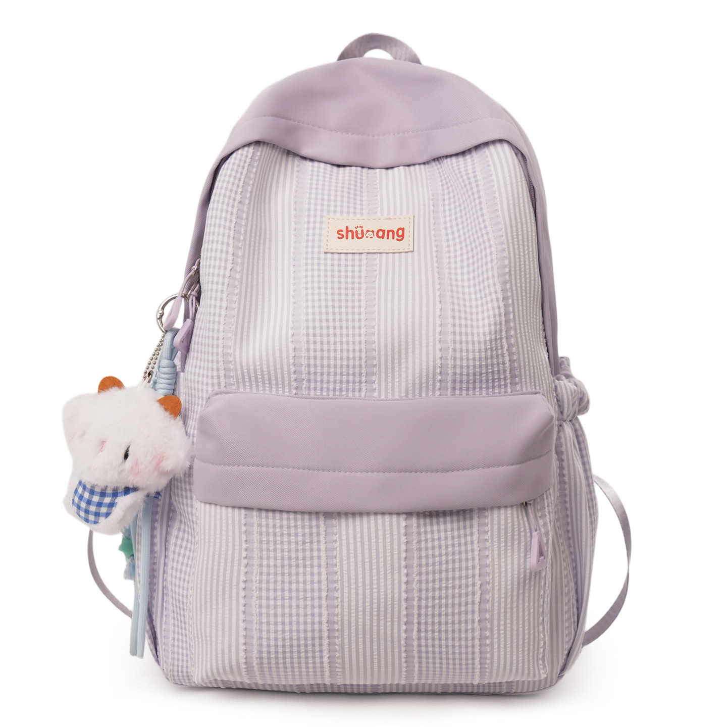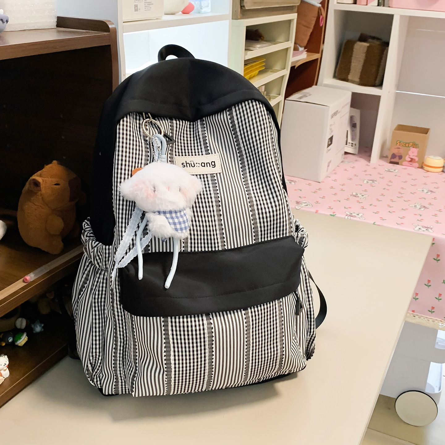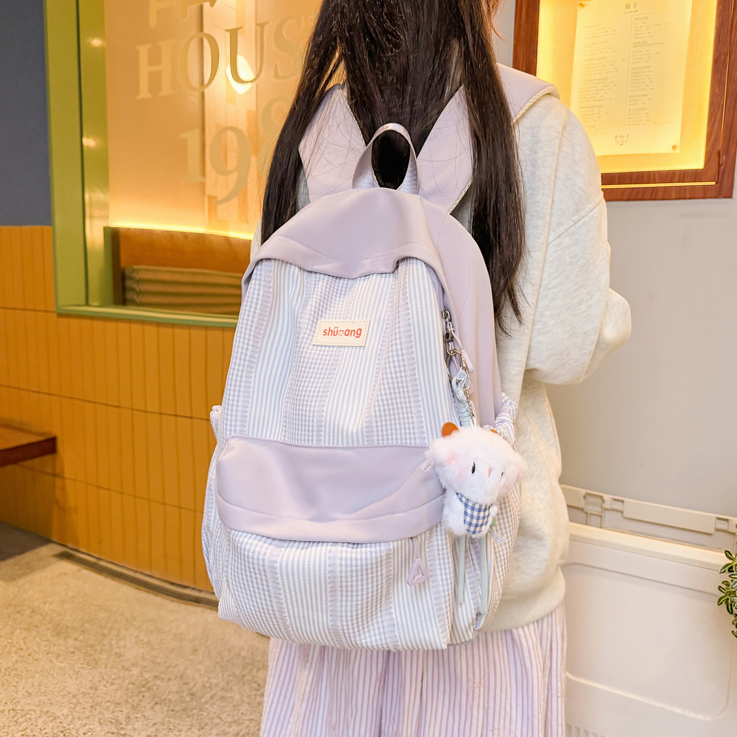 新款条纹中学生双肩包春季出游踏青高颜值软妹可爱小清新双肩背包