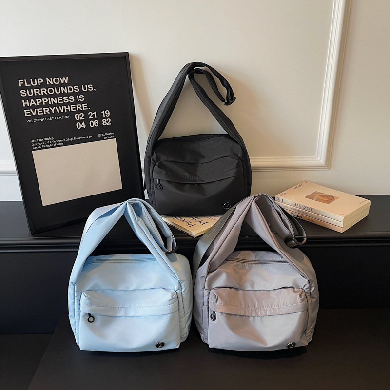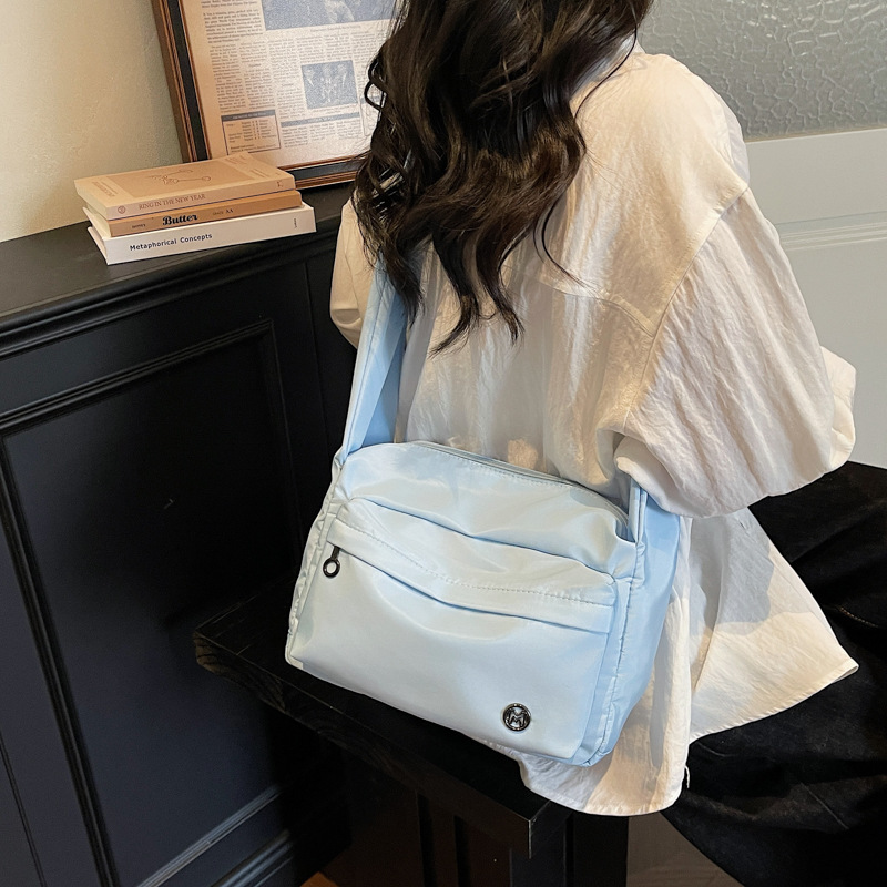 新款2026纯色斜挎包单肩包多口袋轻便休闲男女包包百搭耐脏布包