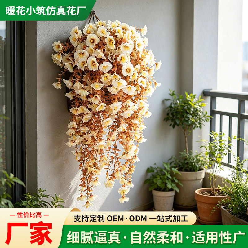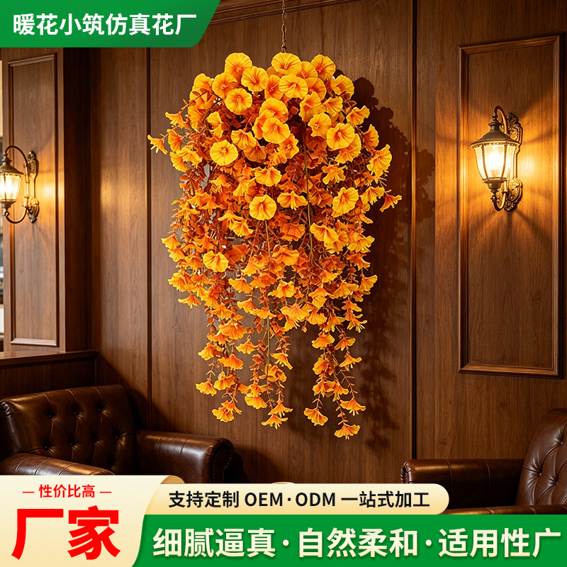 跨境人造绿植45目/69目仿真秋季牵牛花家居壁挂装饰仿真藤条花藤