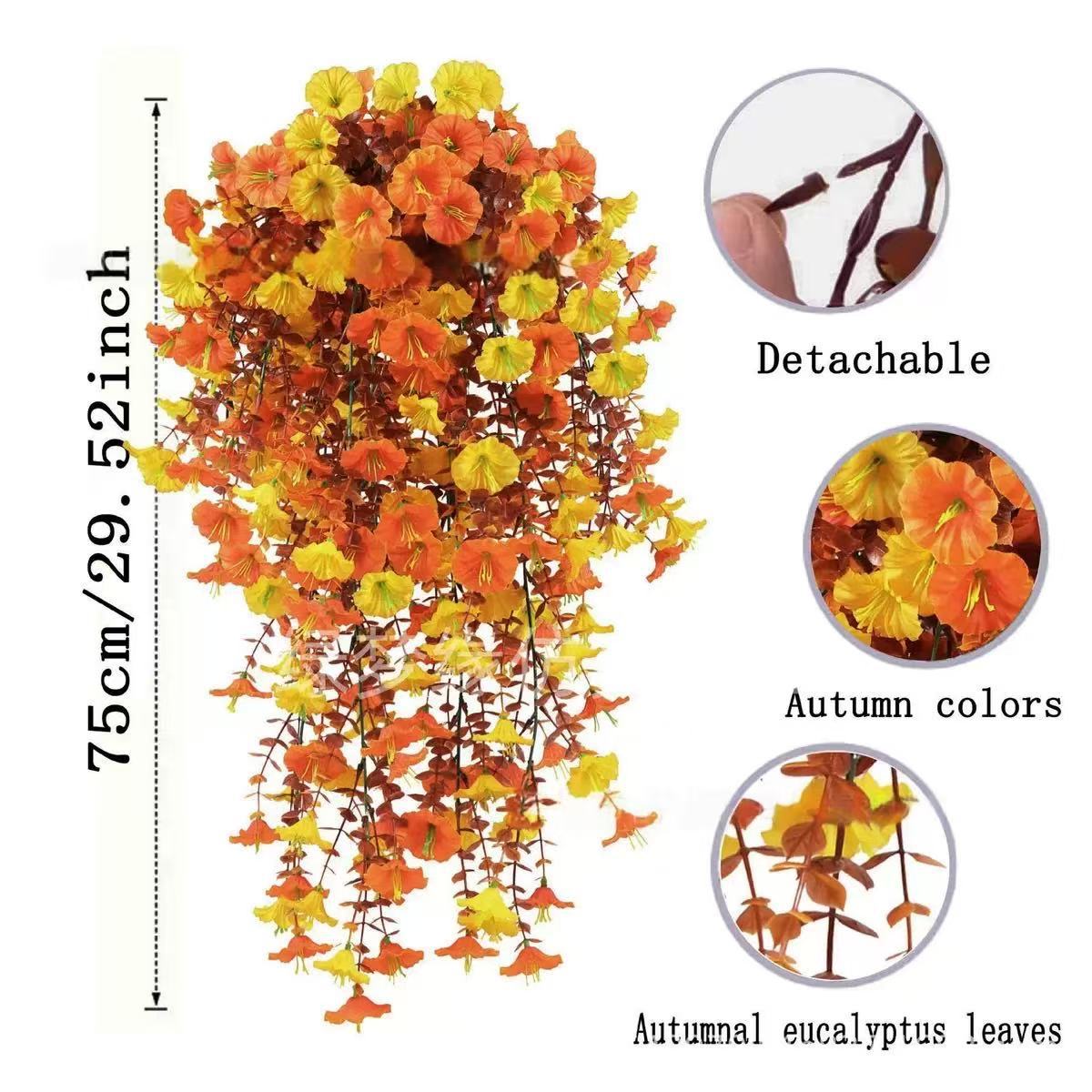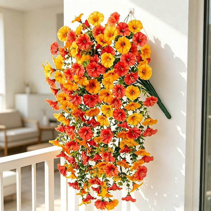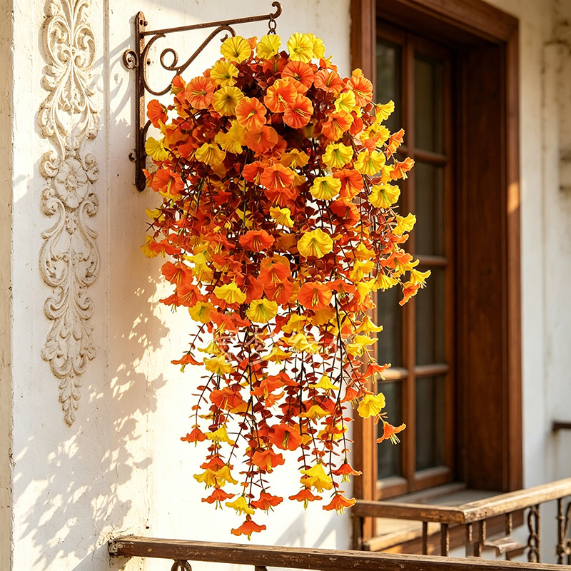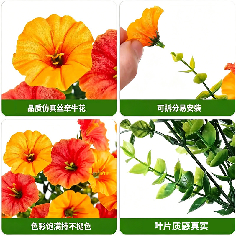 跨境户外庭院仿真花双色棕叶绿叶秋季牵牛花家居壁挂装饰仿真花藤