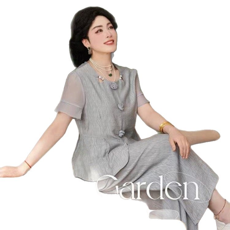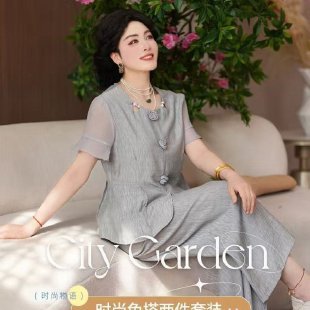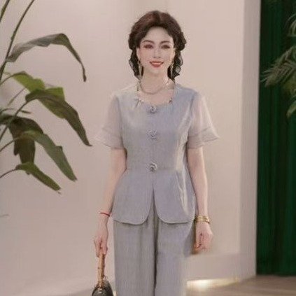 妈妈2026新款夏季宽松套装时尚气质洋气短袖上衣中老年西装两件套