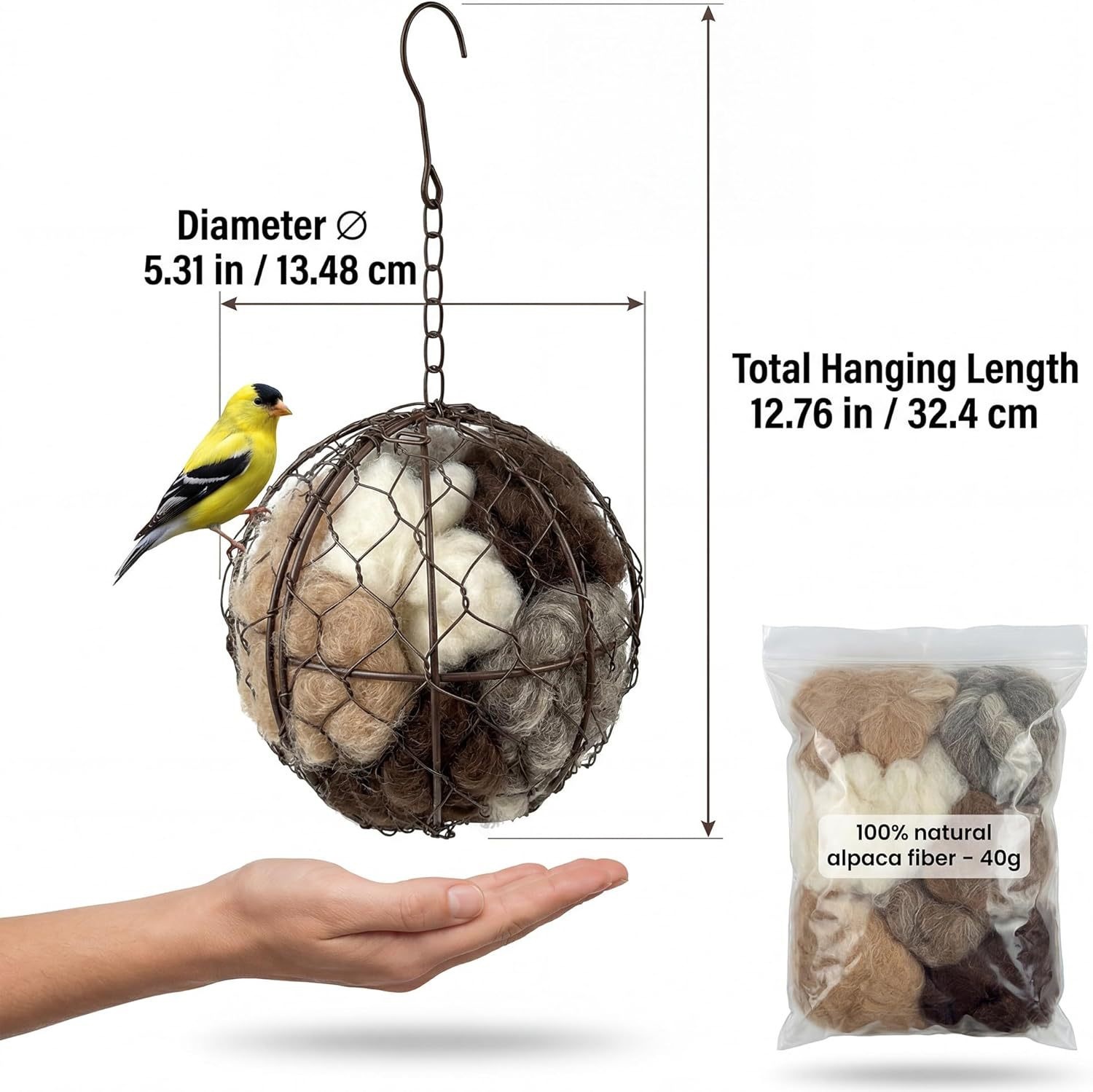 跨境新品Handmade Alpaca Fiber Bird Nest Heart-Shaped球形鸟巢