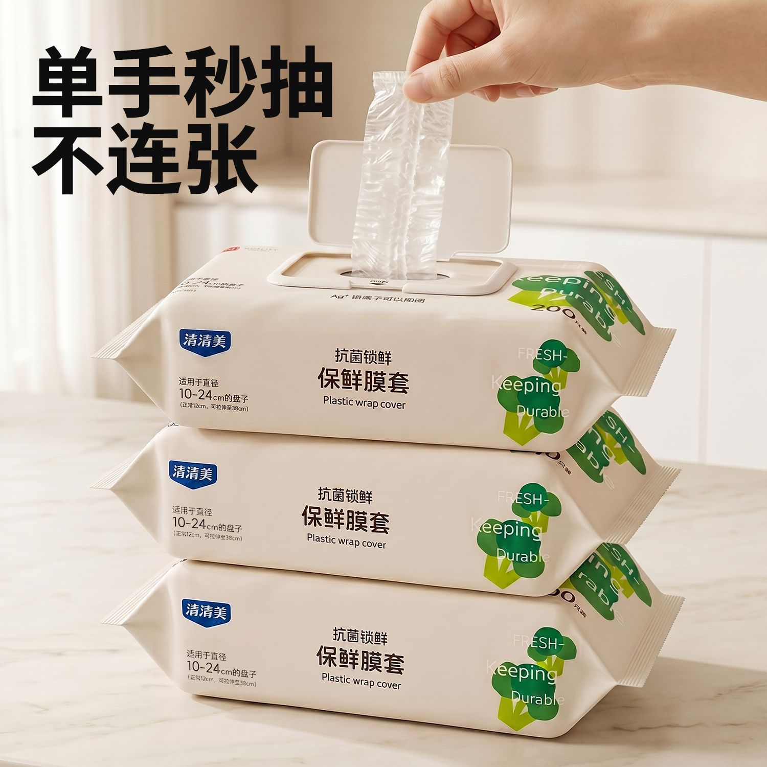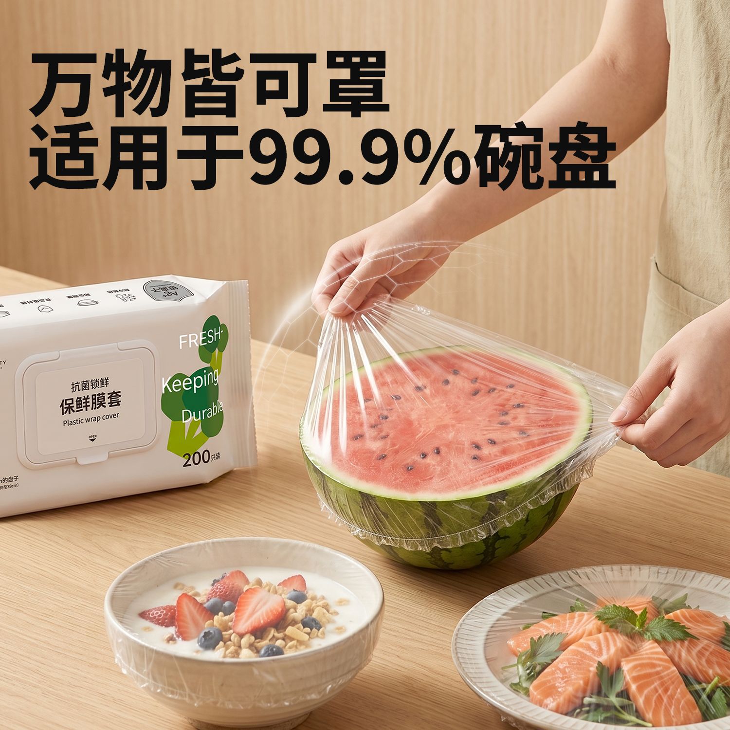 家用一次性食品级保鲜膜厨房食物保温膜套简约松紧透明厨房食物罩