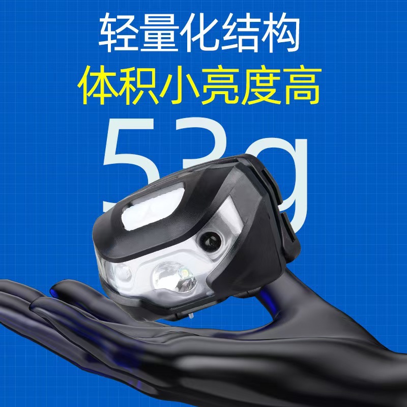 跨境电商USB充电强光LED防水感应头灯 跑步头灯 钓鱼充电塑料头灯