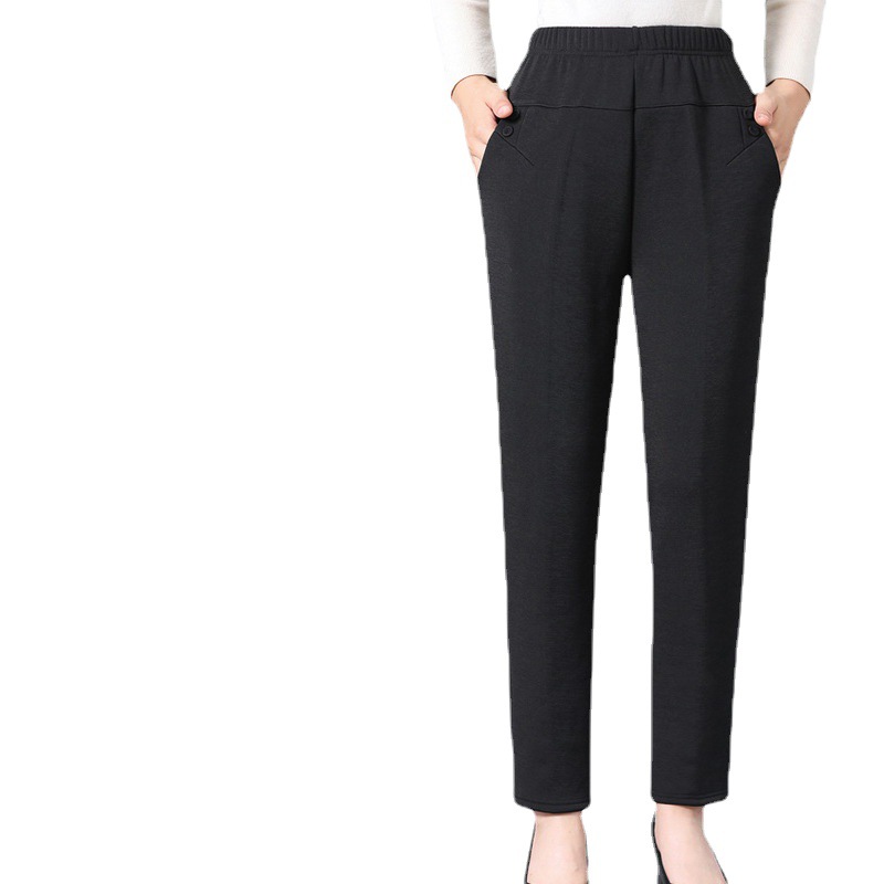 中老年女裤加厚秋冬季妈妈装宽松纯色棉裤老年人奶奶装保暖裤百搭