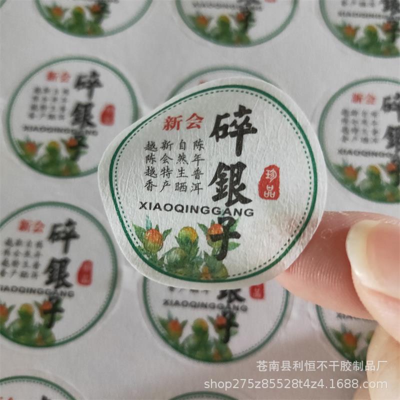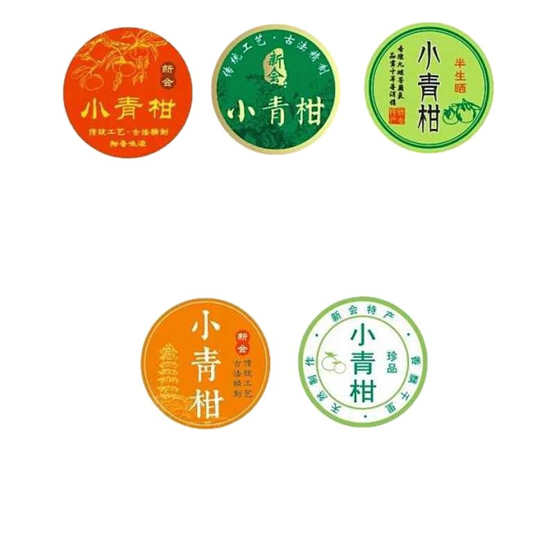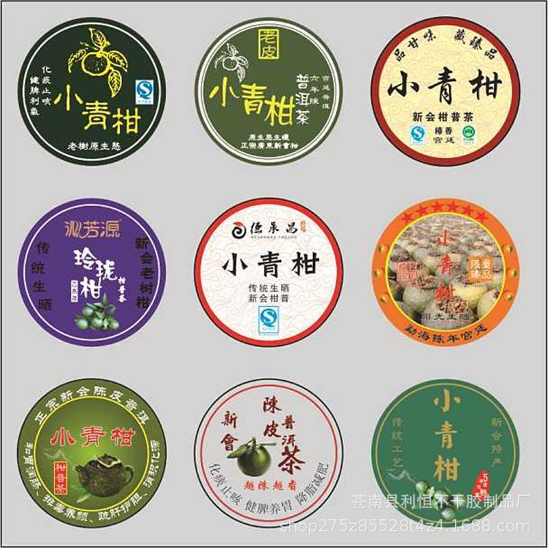 美纹纸标签定 制印刷商标logo小青柑茶叶标签圆形不干胶标签贴纸