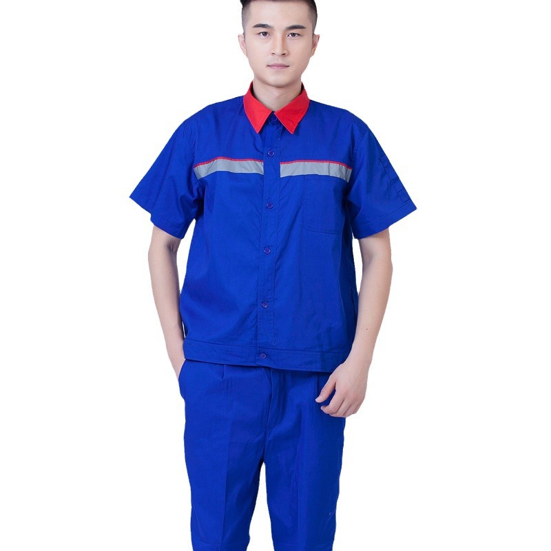 新款夏季薄款长袖工服套装 男工程服吸汗透气车间厂服 汽修劳保服