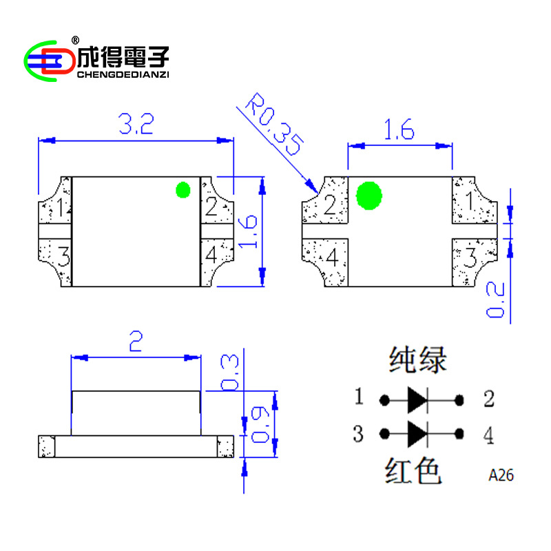 1206红蓝双色led灯珠发光管1209红绿普绿翠绿3227RGB蓝绿单体超薄