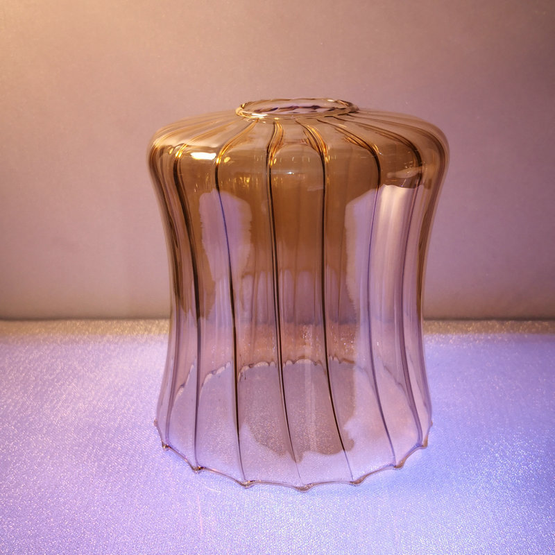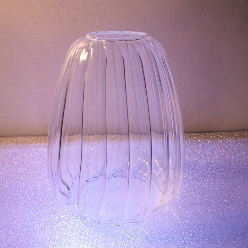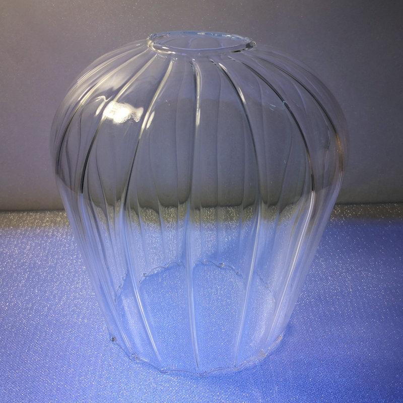 厂家定 制 灯具装饰透明玻璃灯罩 透明压制压机条纹玻璃灯罩led