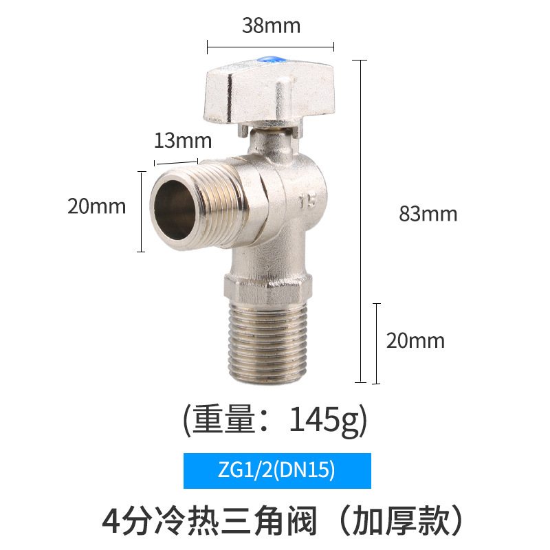 | 规格 | 4分大流量角阀(加长加厚款) | 规格 | 4分加长加厚角阀B款 |