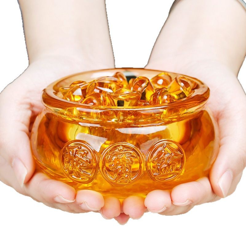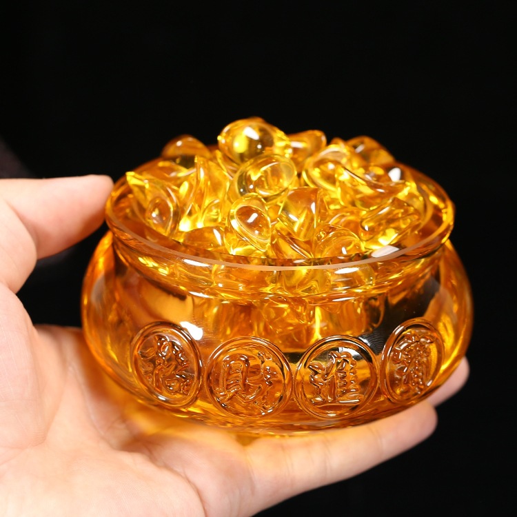 聚宝盆水晶石元宝k9黄水晶家居摆件招财工艺品地摊批发