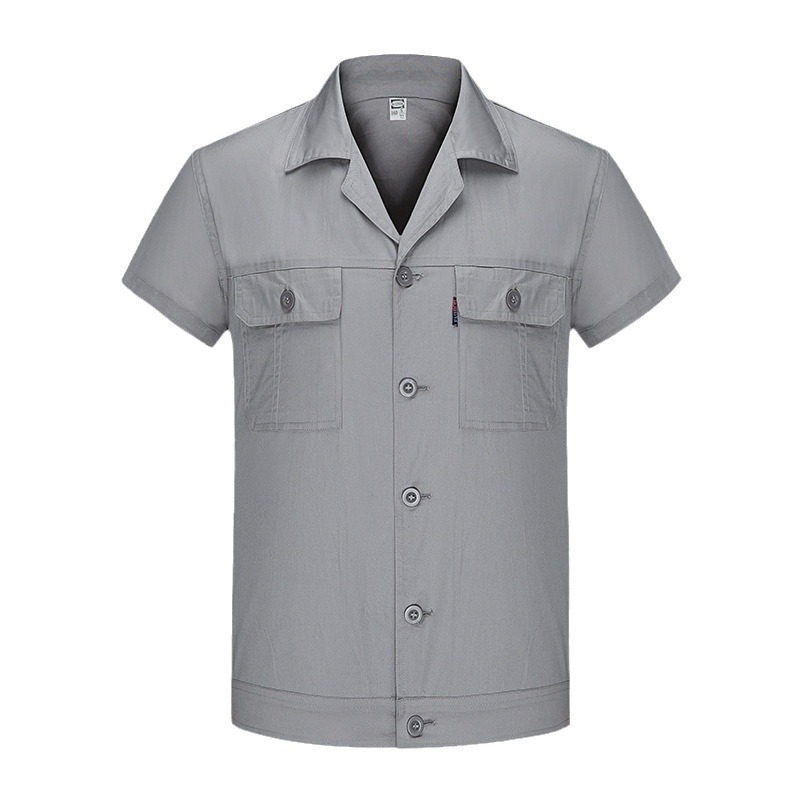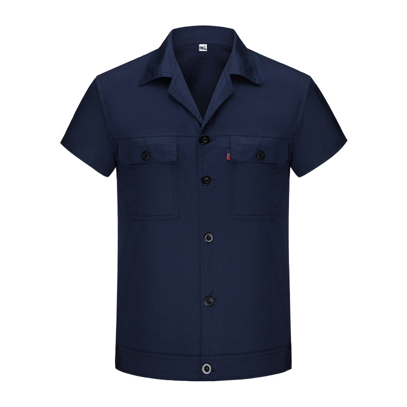 现货工服 工装厂服 上新纯棉细斜纹春夏系扣款短袖工作服套装6018