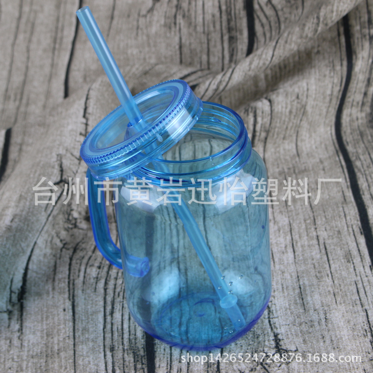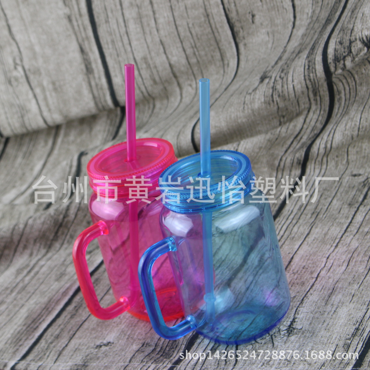 创意彩色梅森杯子夏日公鸡杯果汁冷饮料吸管塑料水杯带盖时尚水杯