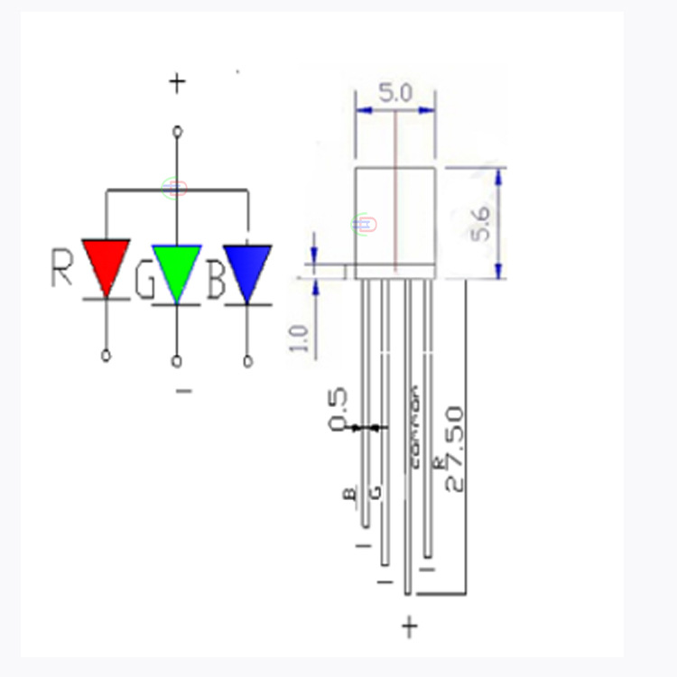 规格 | F5平头RGB雾状共阴 | 规格 | F5平头RGB雾状共阳 |