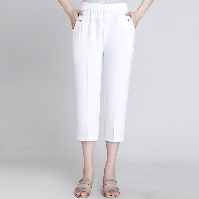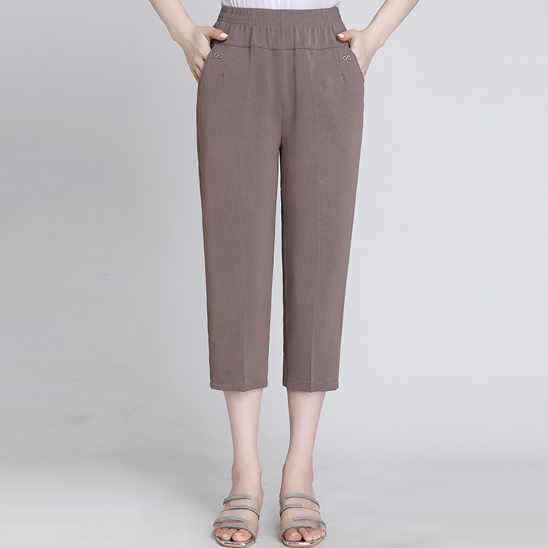 妈妈夏季薄款七分裤松紧婆婆裤子中老年人女裤奶奶直筒裤显瘦设计