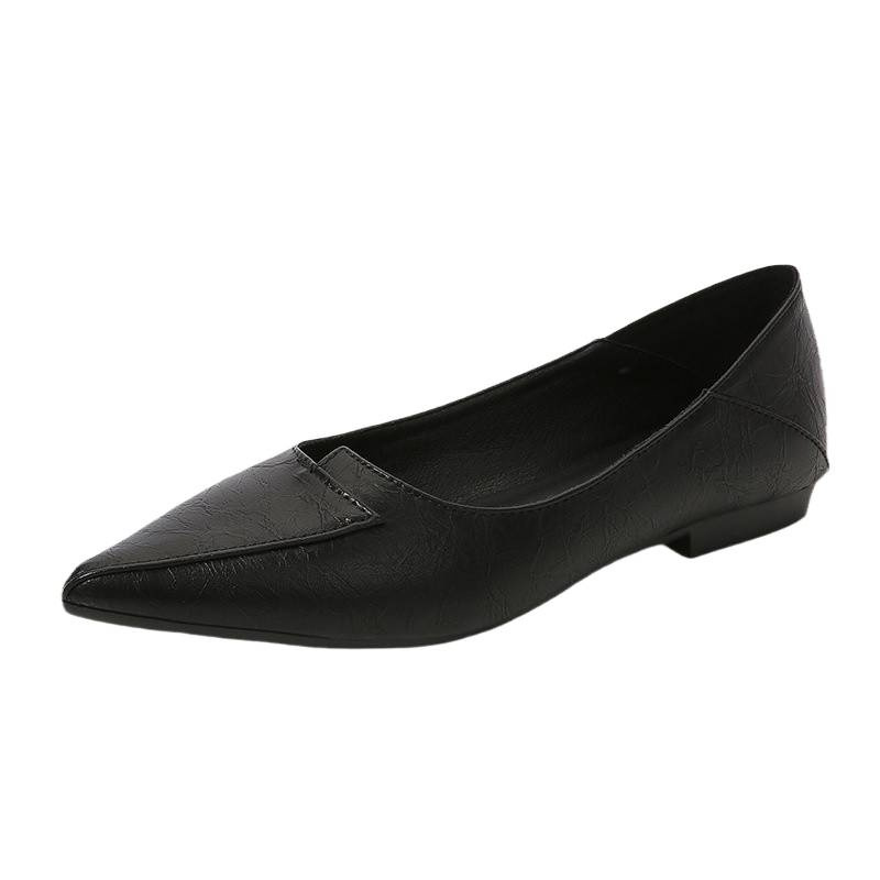 跨境工作鞋软底黑色平底鞋职业空姐鞋 女尖头单鞋皮鞋厂销潮款