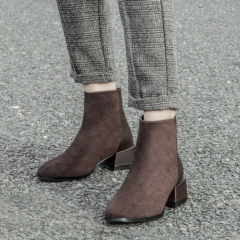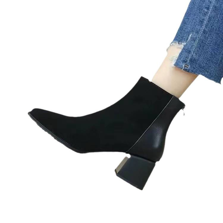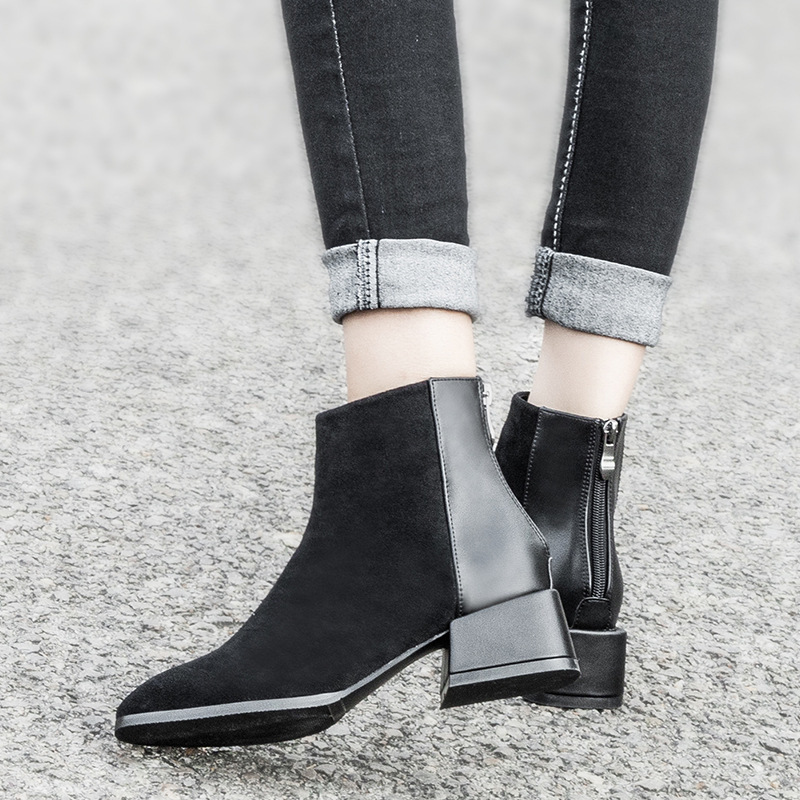 绒面低跟时装靴女2025新款粗跟美拉德靴子法式气质黑色短靴