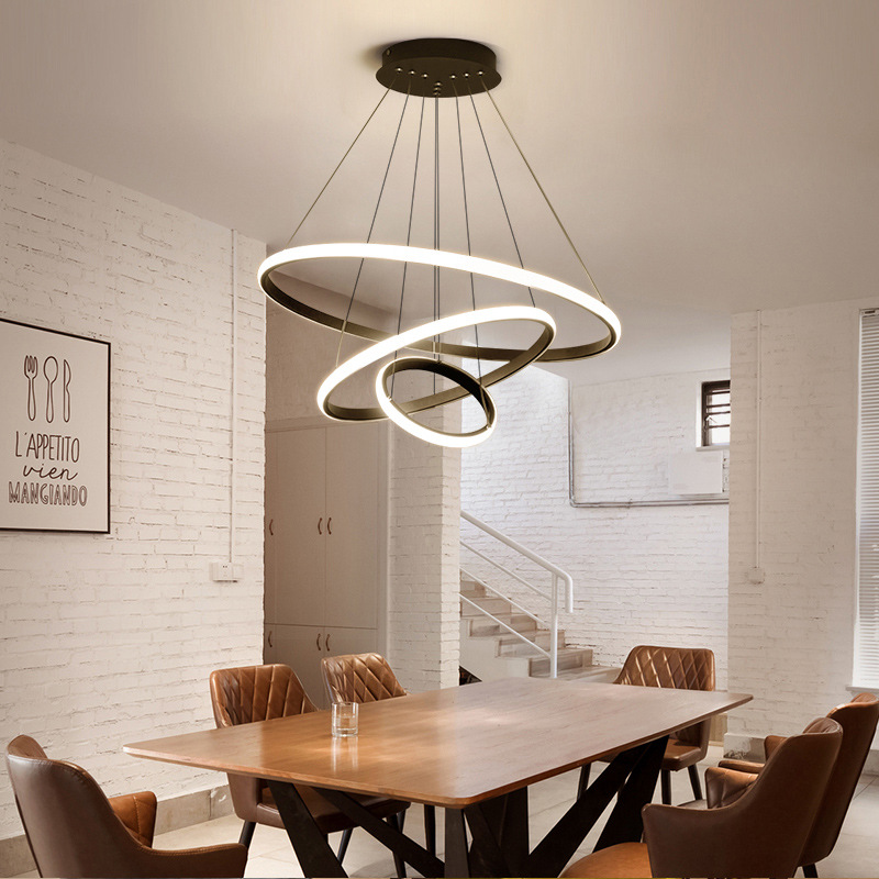 北欧餐厅吊灯现代简约LED客厅灯金色轻奢圆环吧台创意书房卧室灯