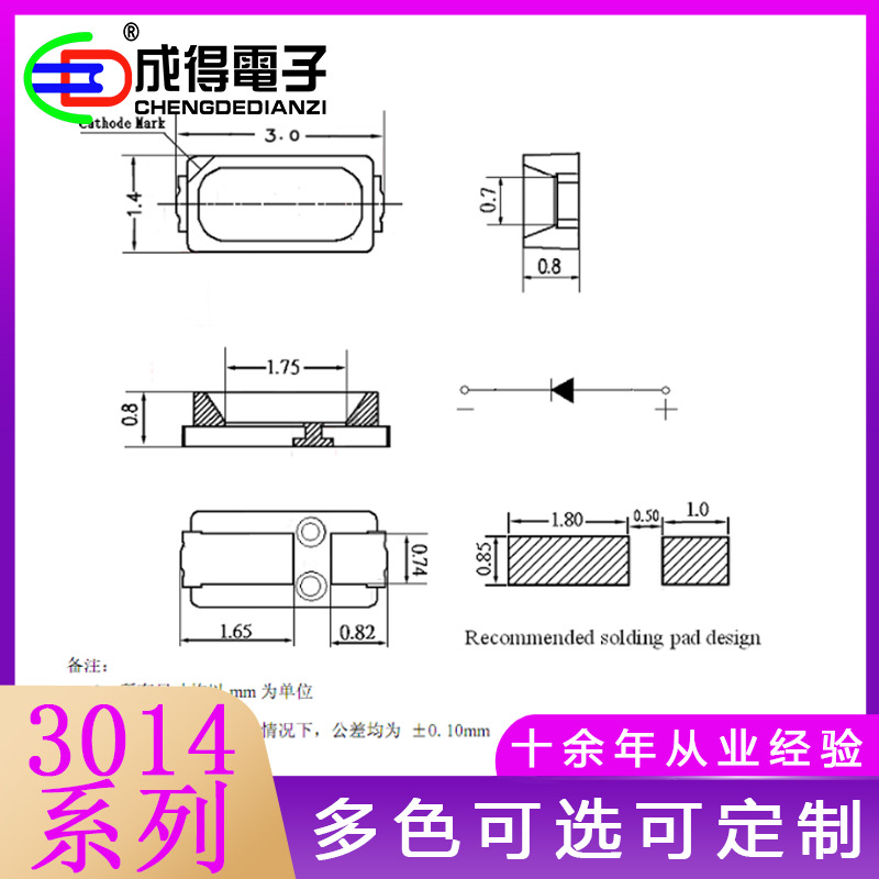 3014正白光 暖白/冷白高亮红黄绿蓝紫发光二极管多色可选LED灯珠