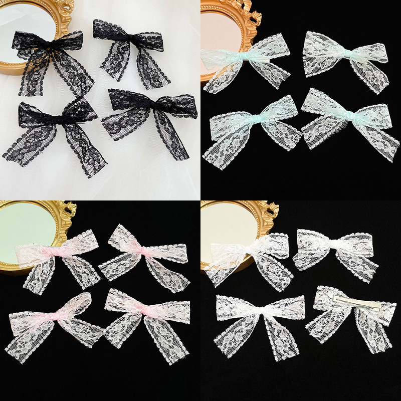超仙l白色蕾丝花蝴蝶结发夹头女网侧边编发发卡小夹子发饰碎发